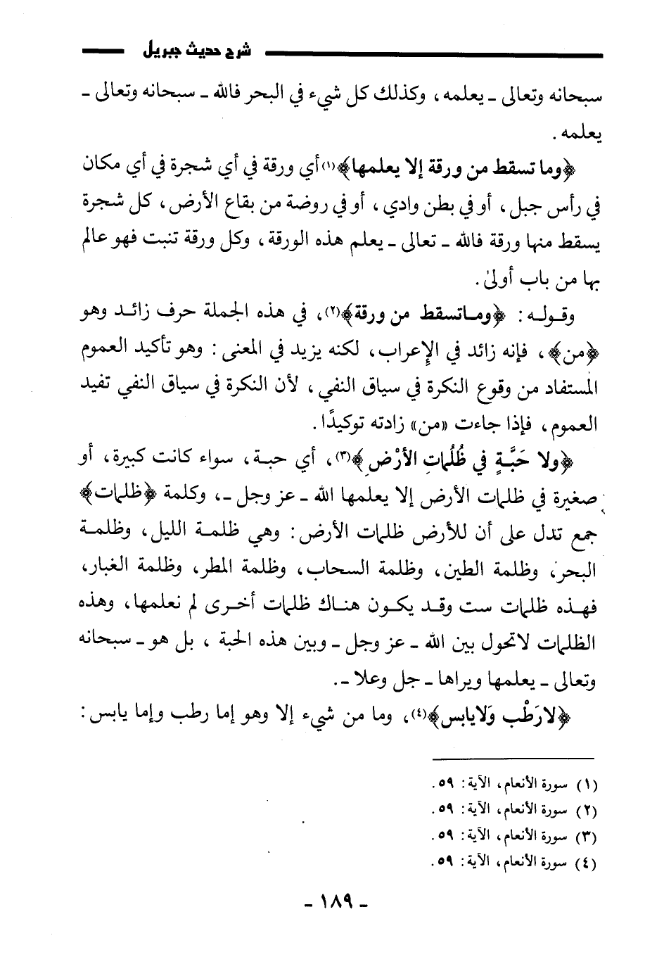 وقوله: {وَمَا تَسْقُطُ مِنْ وَرَقَةٍ} ، في هذه الجملة حرف زائد وهو مَنِ، فإنه زائد في الإعراب، لكنه يزيد في المعنى: وهو تأكيد العموم المستفاد من وقوع النكرة في سياق النفي؛ لأن النكرة في سياق النفي تفيد العموم، فإذا جاءت " من " زادته توكيدًا.