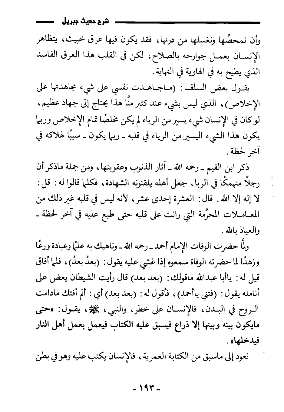 وأن نمحصها ونغسلها من درنها، فقد يكون فيها عرق خبيث، يتظاهر الإنسان بعمل جوارحه بالصلاح، لكن في القلب هذا العرق الفاسد الذي يطيح به في الهاوية في النهاية.