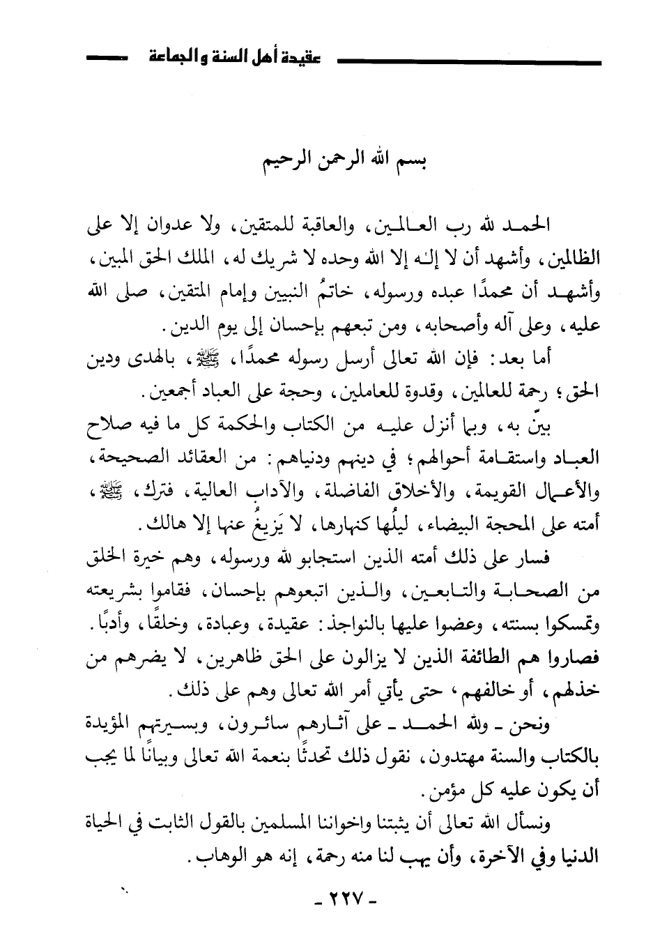 ونحن - ولله الحمد - على آثارهم سائرون، وبسيرتهم المؤيدة بالكتاب والسنة مهتدون، نقول ذلك تحدثا بنعمة الله تعالى وبيانا لما يجب أن يكون عليه كل مؤمن.