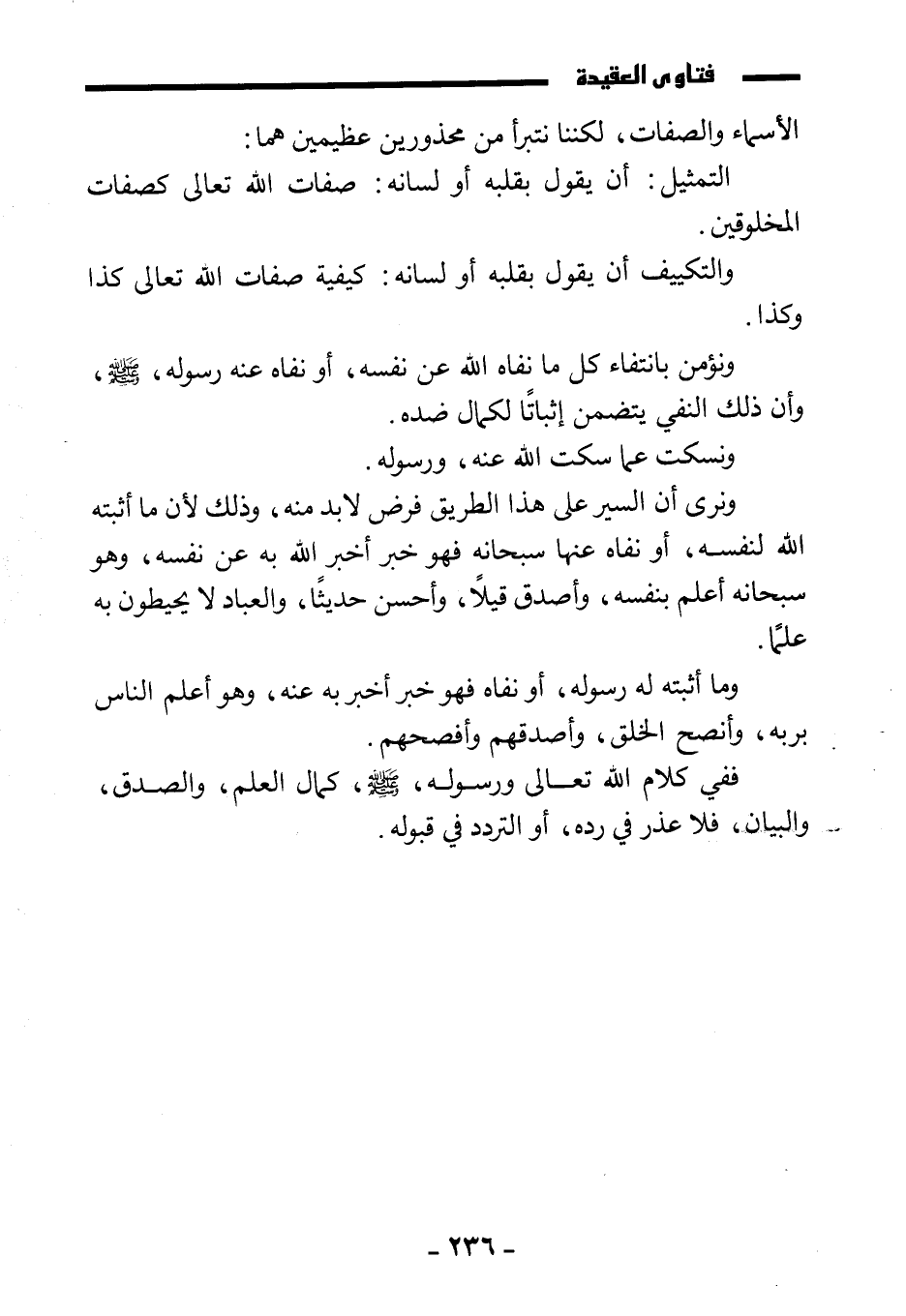 الأسماء والصفات، لكننا نتبرأ من محذورين عظيمين هما: