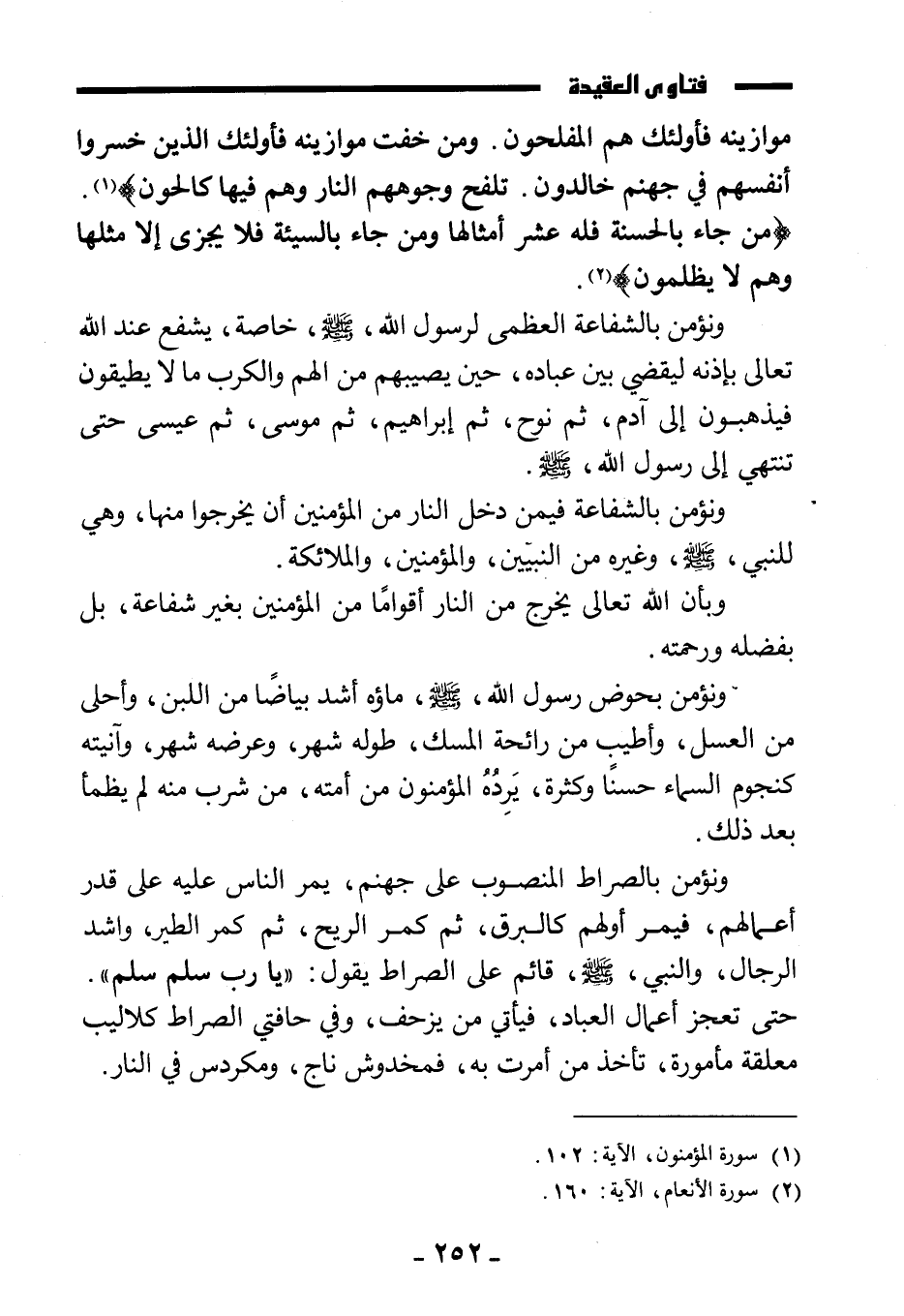 {فَمَنْ ثَقُلَتْ مَوَازِينُهُ فَأُولَئِكَ هُمُ الْمُفْلِحُونَ وَمَنْ خَفَّتْ مَوَازِينُهُ فَأُولَئِكَ الَّذِينَ خَسِرُوا أَنْفُسَهُمْ فِي جَهَنَّمَ خَالِدُونَ تَلْفَحُ وُجُوهَهُمُ النَّارُ وَهُمْ فِيهَا كَالِحُونَ} . {مَنْ جَاءَ بِالْحَسَنَةِ فَلَهُ عَشْرُ أَمْثَالِهَا وَمَنْ جَاءَ بِالسَّيِّئَةِ فَلَا يُجْزَى إِلَّا مِثْلَهَا وَهُمْ لَا يُظْلَمُونَ} .