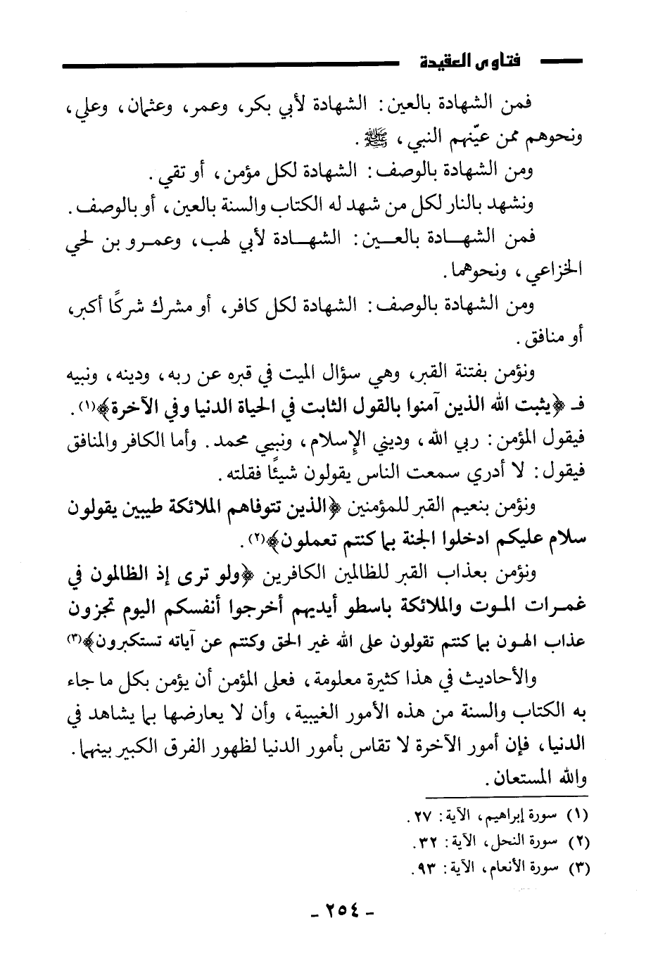 ونشهد بالنار لكل من شهد له الكتاب والسنة بالعين، أو بالوصف.