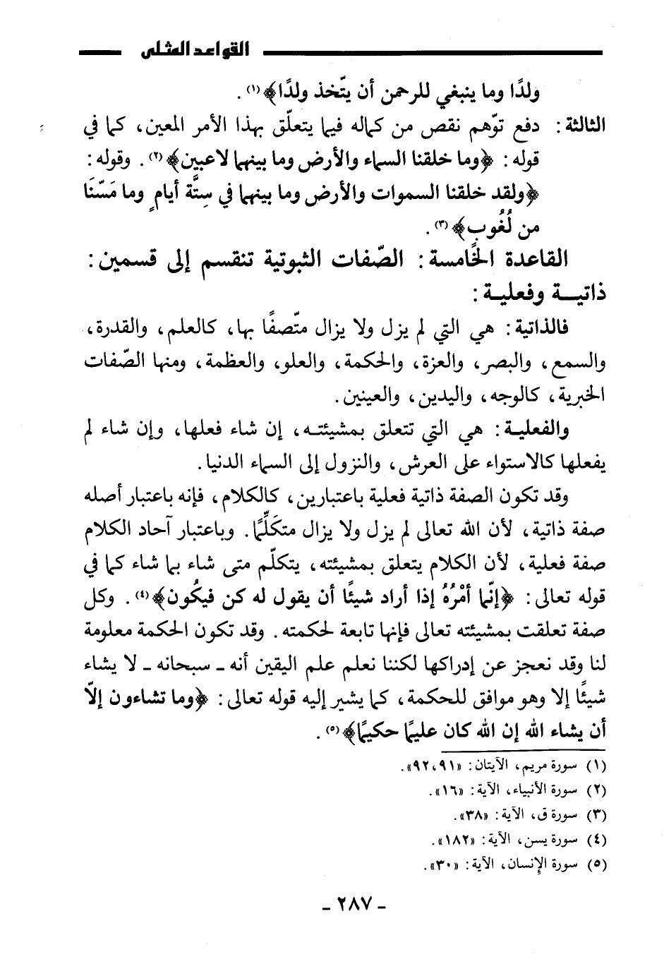 القاعدة الخامسة: الصفات الثبوتية تنقسم إلى قسمين: ذاتية وفعلية: