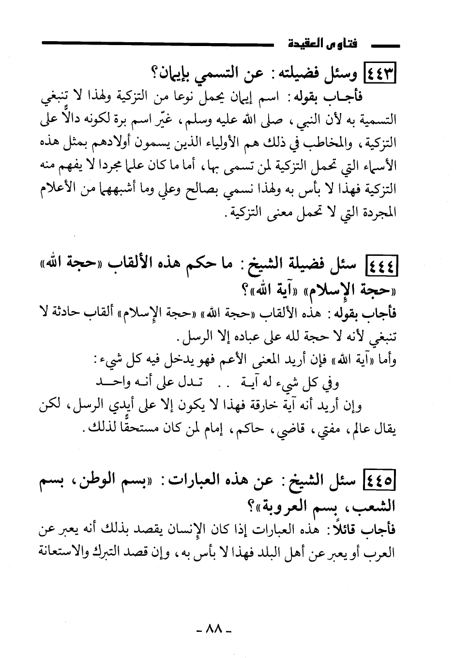 (444) سئل فضيلة الشيخ: ما حكم هذه الألقاب "حجة الله"، "حجة الإسلام"، "آية الله "؟