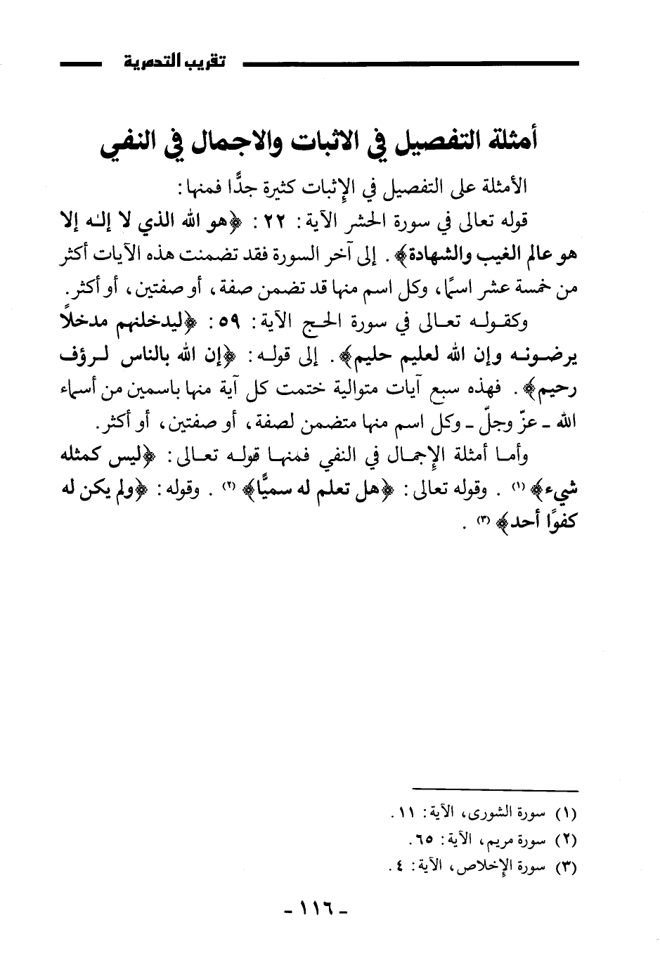 أمثلة التفصيل في الإثبات والإجمال في النفي