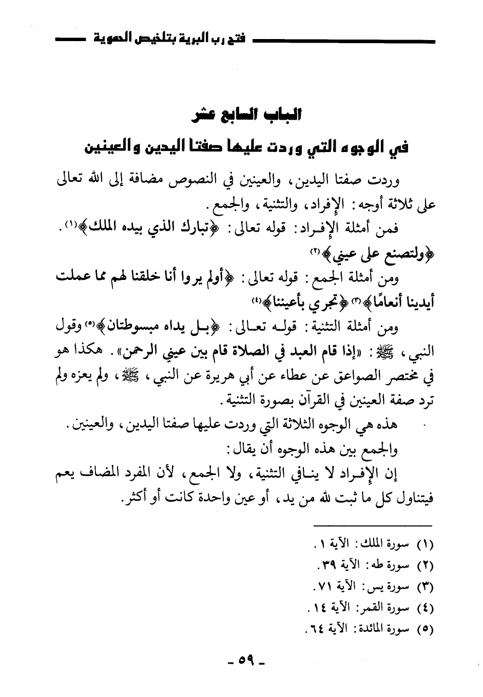الباب السابع عشر: في الوجوه التي وردت عليها صفتا اليدين والعينين