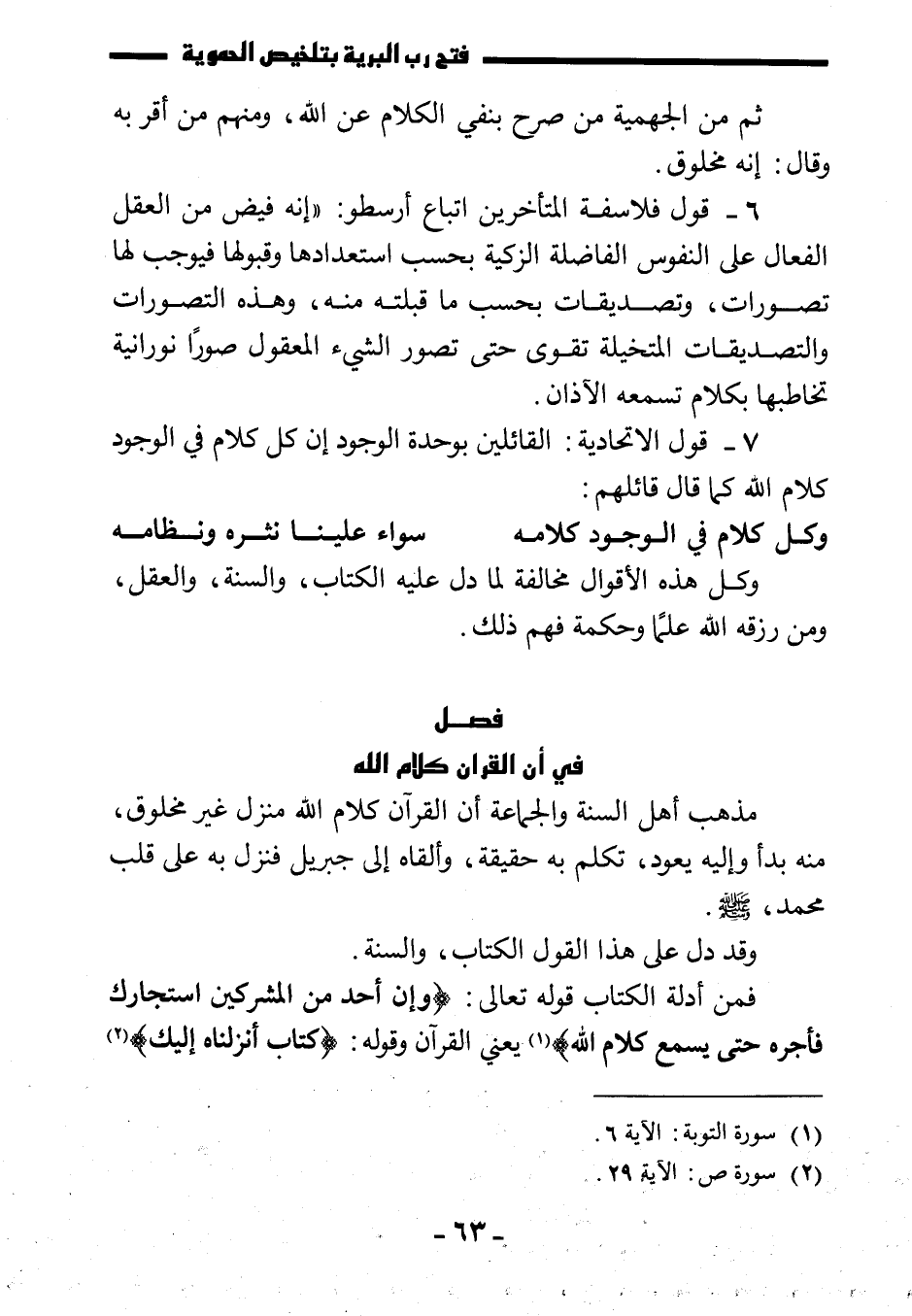 فمن أدلة الكتاب قوله تعالى: {وَإِنْ أَحَدٌ مِنَ الْمُشْرِكِينَ اسْتَجَارَكَ فَأَجِرْهُ حَتَّى يَسْمَعَ كَلَامَ اللَّهِ} يعني القرآن، وقوله: {كِتَابٌ أَنْزَلْنَاهُ إِلَيْكَ}