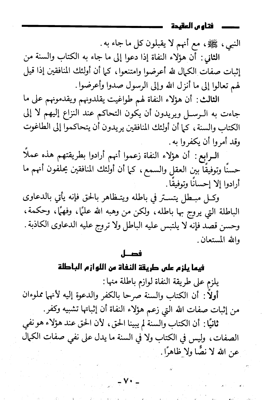 ثانيا: أن الكتاب والسنة لم يبينا الحق، لأن الحق عند هؤلاء هو نفي الصفات، وليس في الكتاب ولا في السنة ما يدل على نفي صفات الكمال عن الله لا نصا ولا ظاهرا.
