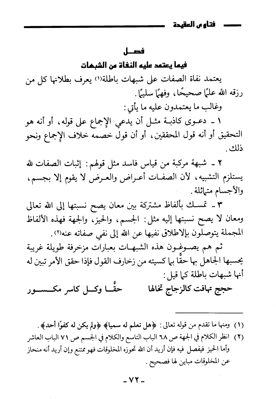 يعتمد نفاة الصفات على شبهات باطلة (¬1) يعرف بطلانها كل من رزقه الله علما صحيحا وفهما سليما.