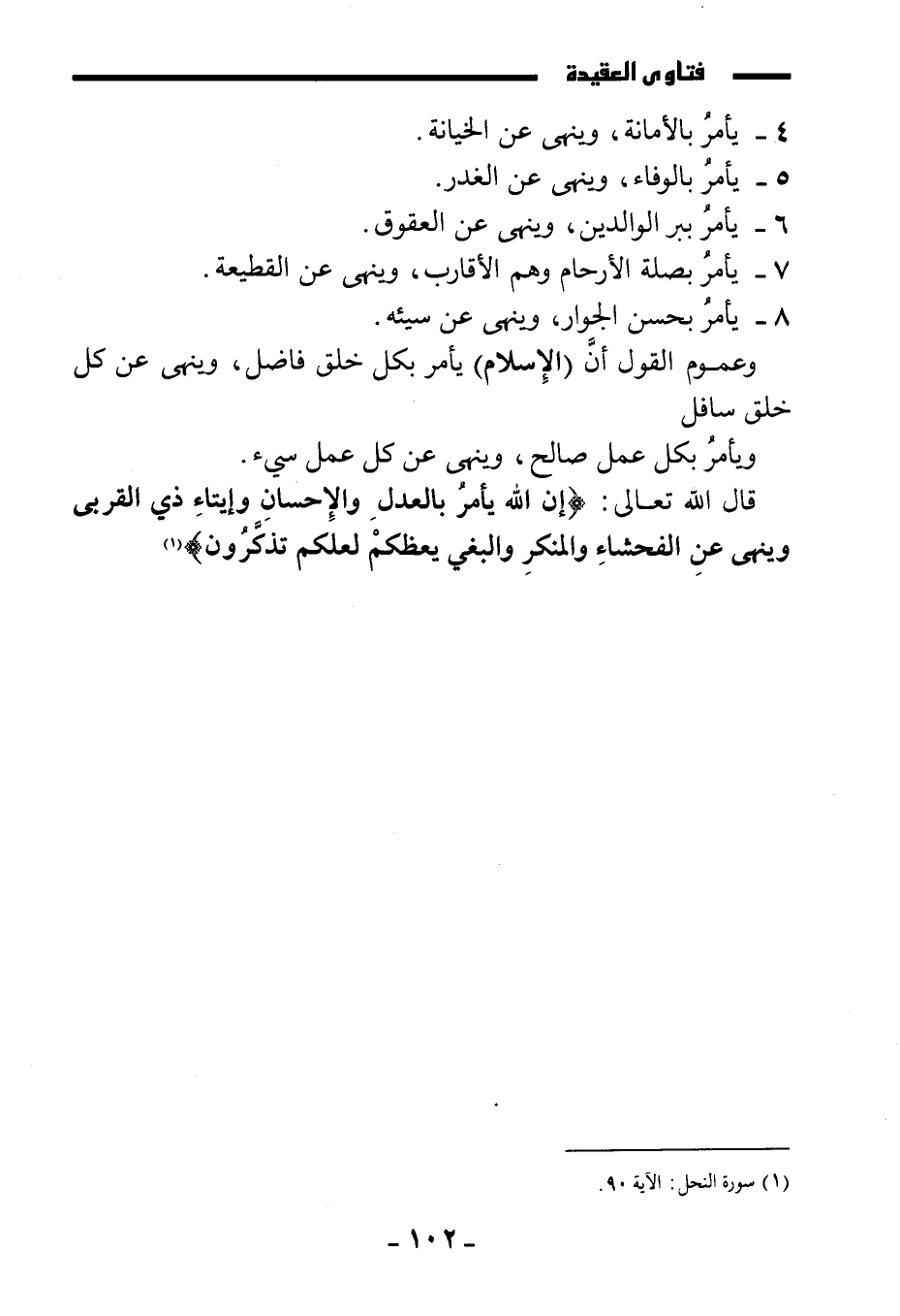 قال الله تعالى: {إِنَّ اللَّهَ يَأْمُرُ بِالْعَدْلِ وَالْإِحْسَانِ وَإِيتَاءِ ذِي الْقُرْبَى وَيَنْهَى عَنِ الْفَحْشَاءِ وَالْمُنْكَرِ وَالْبَغْيِ يَعِظُكُمْ لَعَلَّكُمْ تَذَكَّرُونَ} .