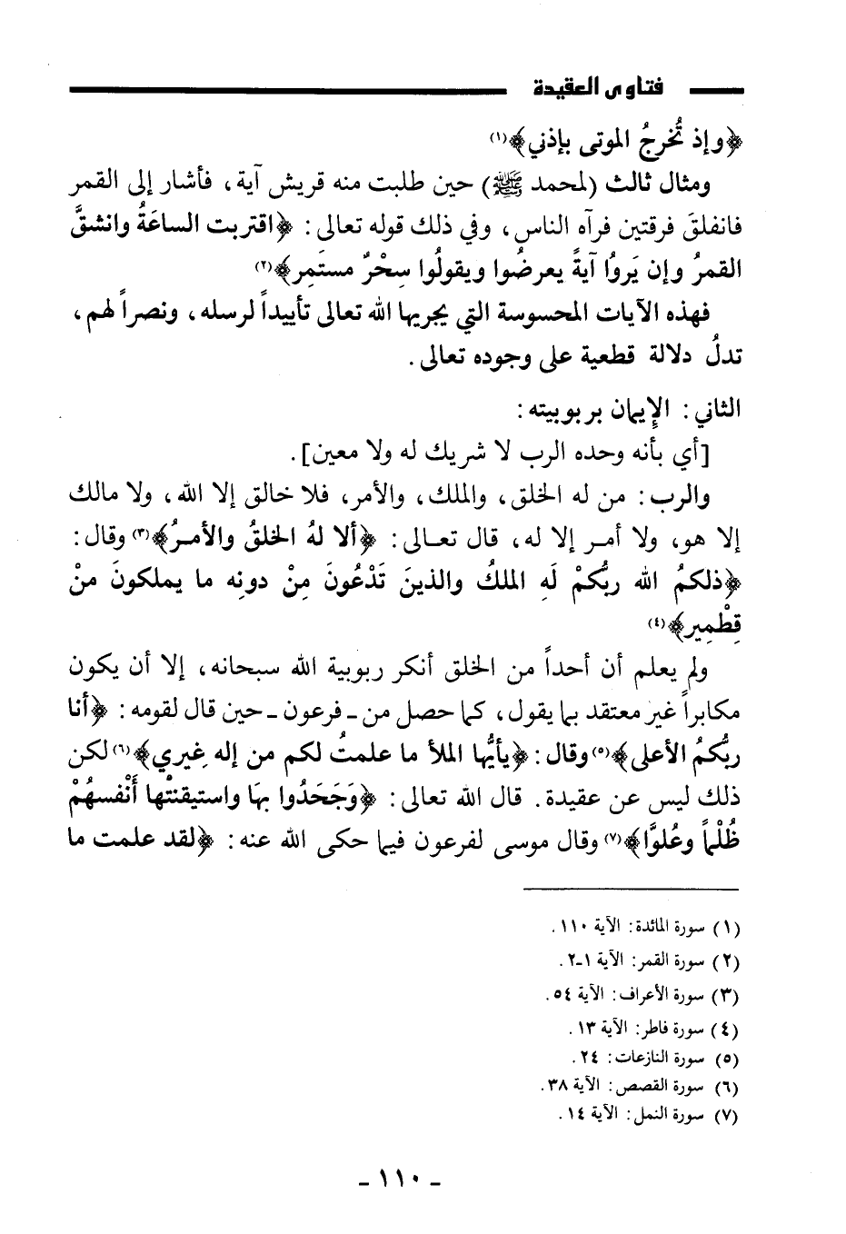 ولم يعلم أن أحدا من الخلق أنكر ربوبية الله سبحانه، إلا أن يكون مكابرا غير معتقد بما يقول، كما حصل من - فرعون - حين قال لقومه: {أَنَا رَبُّكُمُ الْأَعْلَى} ، وقال: {يَا أَيُّهَا الْمَلَأُ مَا عَلِمْتُ لَكُمْ مِنْ إِلَهٍ غَيْرِي} لكن ذلك ليس عن عقيدة. قال الله تعالى: {وَجَحَدُوا بِهَا وَاسْتَيْقَنَتْهَا أَنْفُسُهُمْ ظُلْمًا وَعُلُوًّا} وقال موسى لفرعون فيما حكى الله عنه: