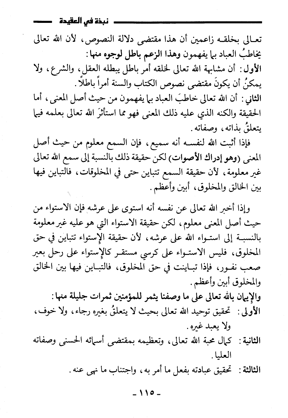 الأول: أن مشابهة الله تعالى لخلقه أمر باطل يبطله العقل، والشرع، ولا يمكن أن يكون مقتضى نصوص الكتاب والسنة أمرا باطلا.
