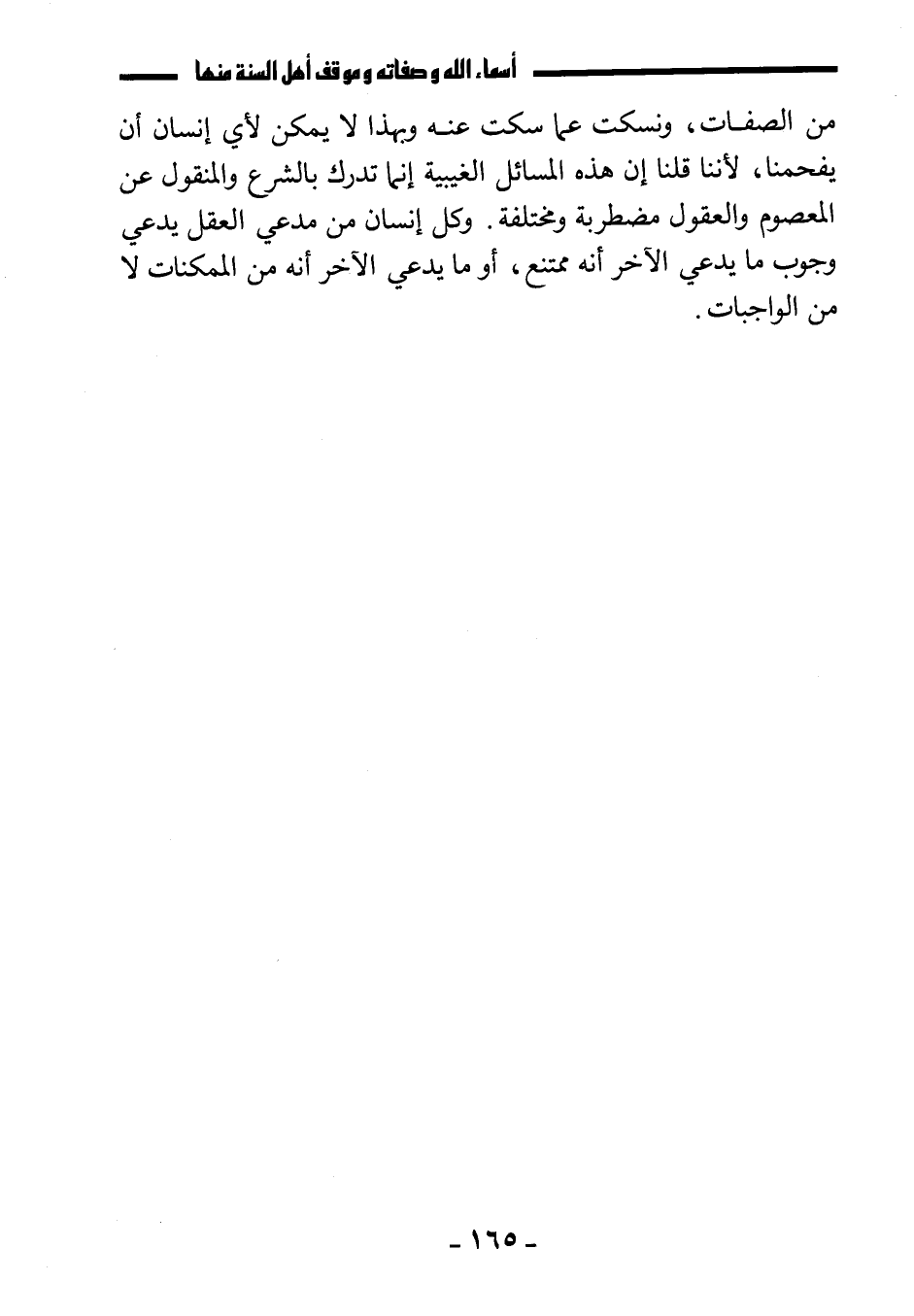 من الصفات، ونسكت عما سكت عنه، وبهذا لا يمكن لأي إنسان أن يفحمنا؛ لأننا قلنا: إن هذه المسائل الغيبية إنما تدرك بالشرع والمنقول عن المعصوم والعقول مضطربة ومختلفة، وكل إنسان من مدعي العقل يدعي وجوب ما يدعي الآخر أنه ممتنع، أو ما يدعي الآخر أنه من الممكنات لا من الواجبات.