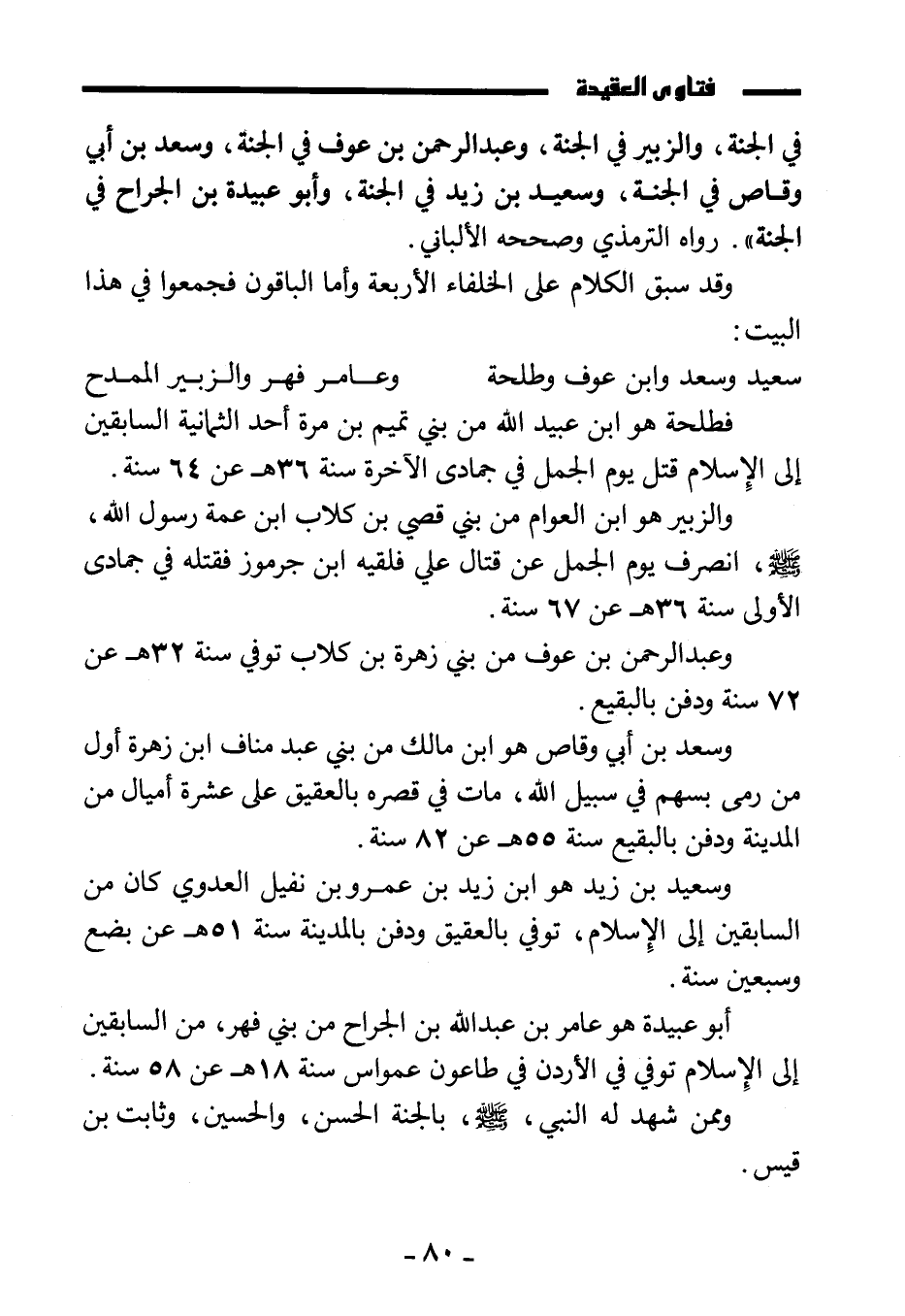 سعيد وسعد وابن عوف وطلحة ... وعامر فهر والزبير الممدح