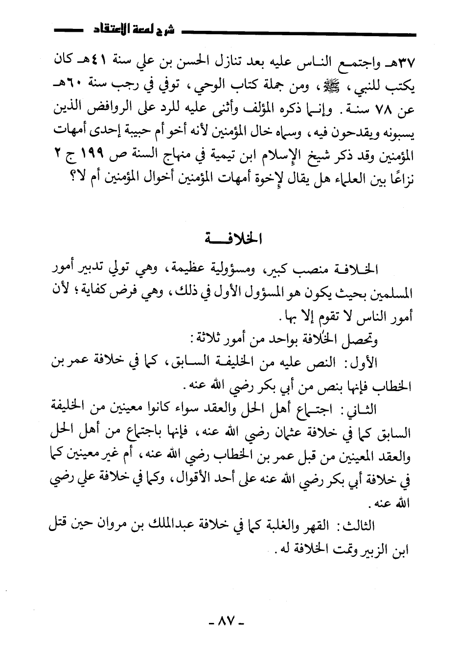 وتحصل الخلافة بواحد من أمور ثلاثة: