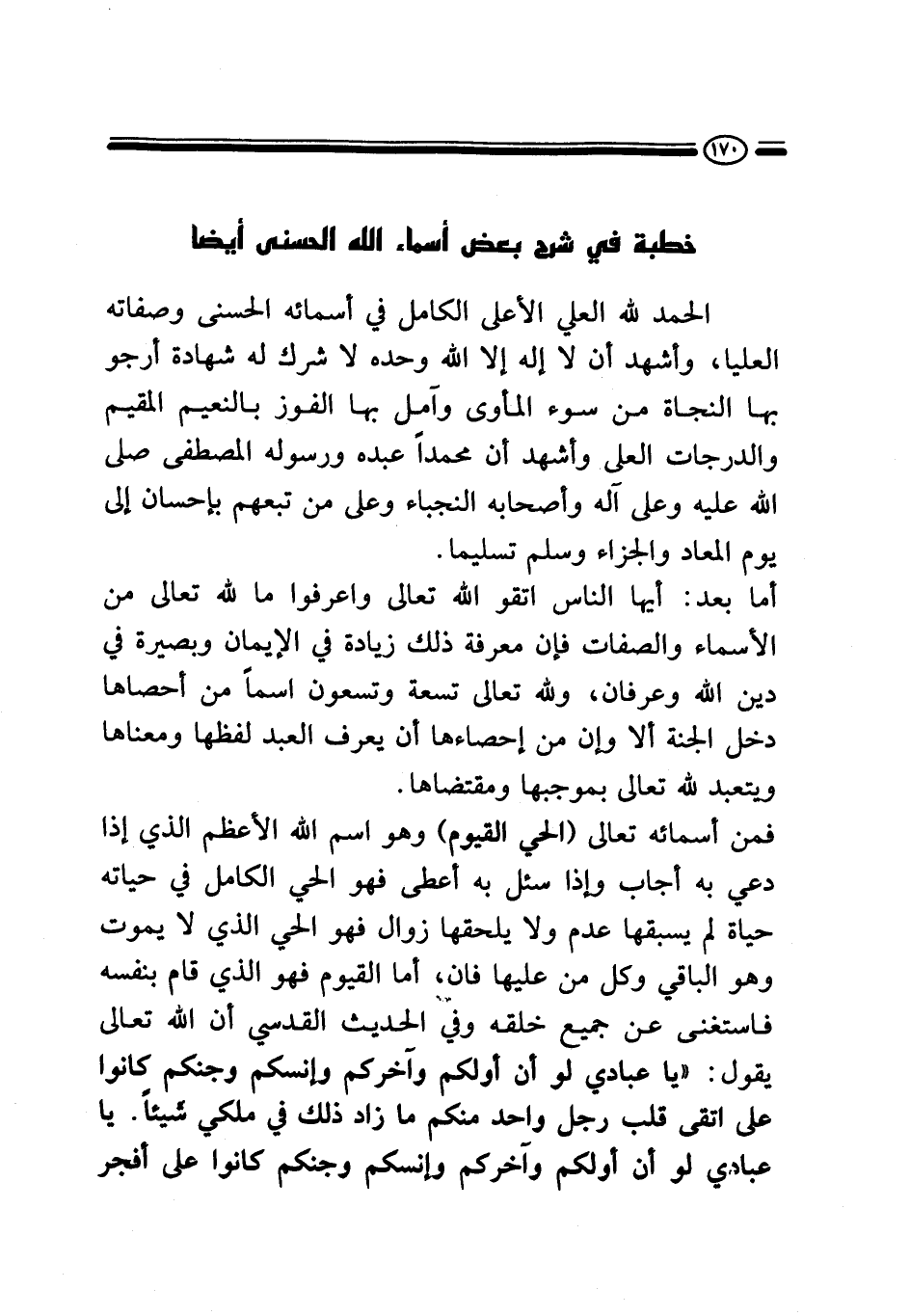 خطبة في شرح بعض أسماء الله الحسنى أيضا