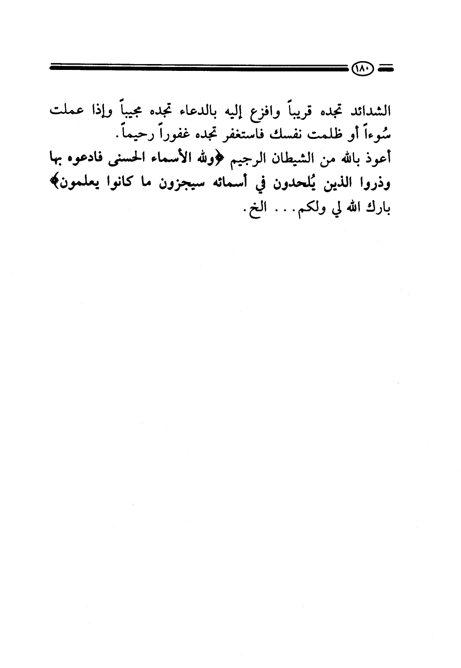 أعوذ بالله من الشيطان الرجيم {وَلِلَّهِ الْأَسْمَاءُ الْحُسْنَى فَادْعُوهُ بِهَا وَذَرُوا الَّذِينَ يُلْحِدُونَ فِي أَسْمَائِهِ سَيُجْزَوْنَ مَا كَانُوا يَعْمَلُونَ} بارك الله لي ولكم ... إلخ.