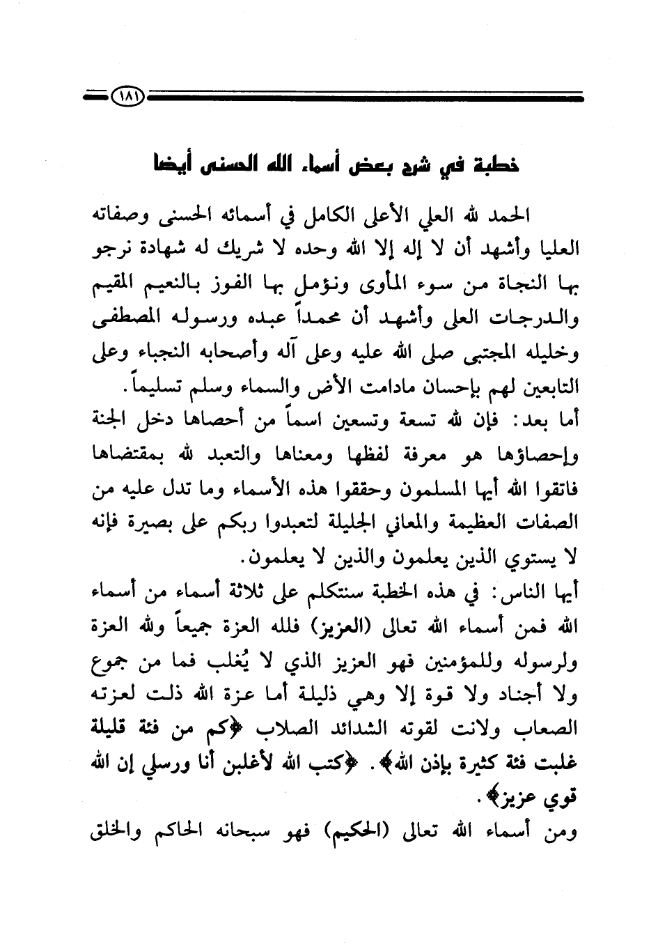 خطبة في شرح بعض أسماء الله الحسنى أيضا