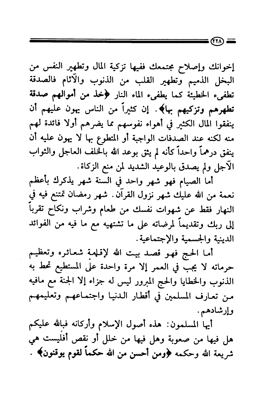 أيها المسلمون: هذه أصول الإسلام وأركانه، فبالله عليكم هل فيها من صعوبة، وهل فيها من خلل أو نقص، أفليست هي شريعة الله وحكمه {وَمَنْ أَحْسَنُ مِنَ اللَّهِ حُكْمًا لِقَوْمٍ يُوقِنُونَ} .