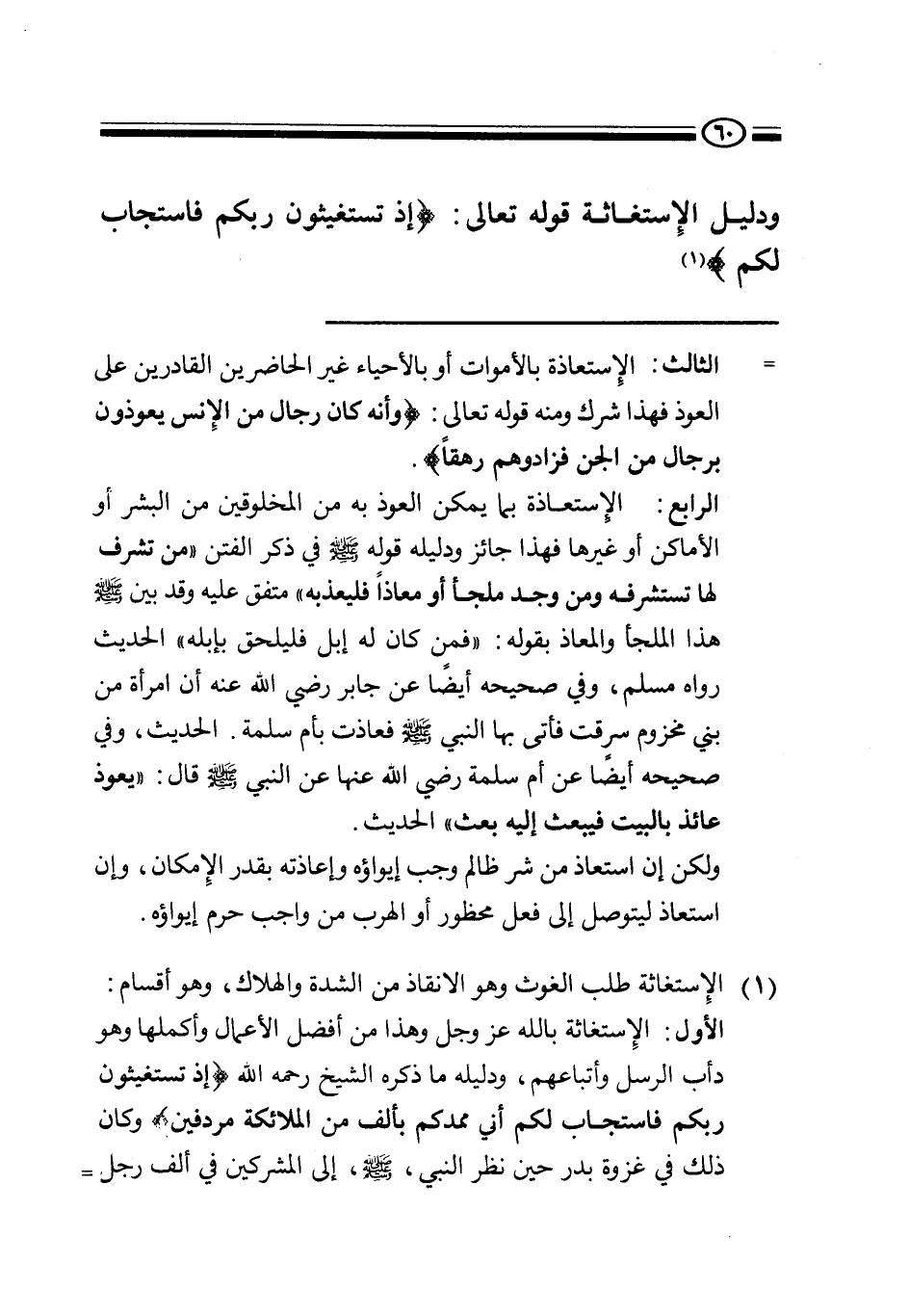(1) الاستغاثة طلب الغوث وهو الإنقاذ من الشدة والهلاك، وهو أقسام: