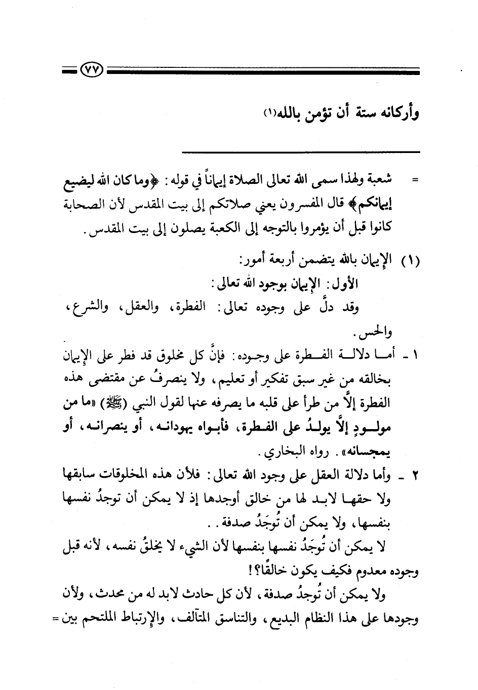 شعبة، ولهذا سمى الله تعالى الصلاة إيمانا في قوله: {وَمَا كَانَ اللَّهُ لِيُضِيعَ إِيمَانَكُمْ} قال المفسرون: يعني صلاتكم إلى بيت المقدس؛ لأن الصحابة كانوا قبل أن يؤمروا بالتوجه إلى الكعبة يصلون إلى بيت المقدس.