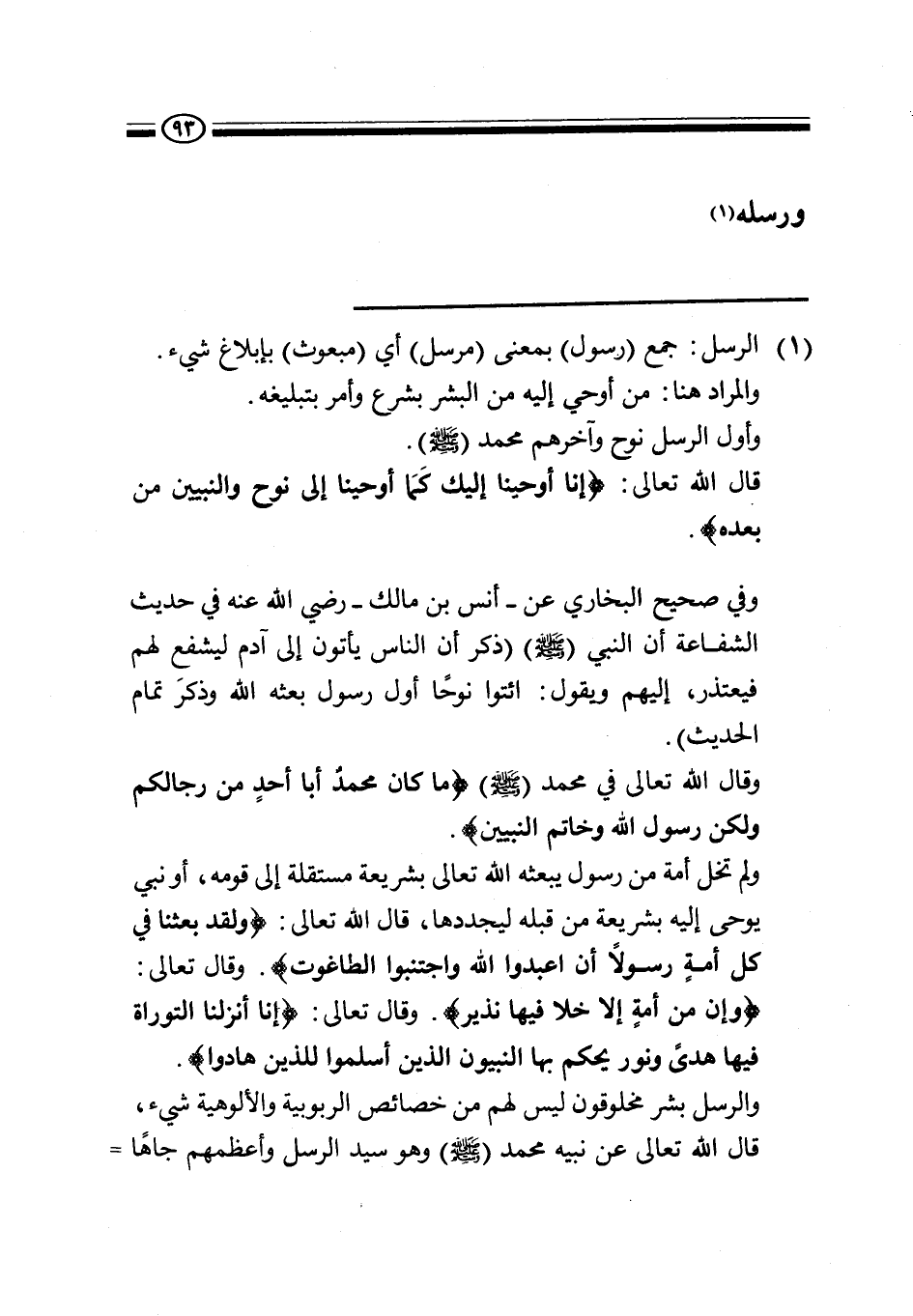 والرسل بشر مخلوقون ليس لهم من خصائص الربوبية والألوهية شيء، قال الله تعالى عن نبيه محمد صَلَّى اللَّهُ عَلَيْهِ وَسَلَّمَ وهو سيد الرسل المرسلين وأعظمهم جاها