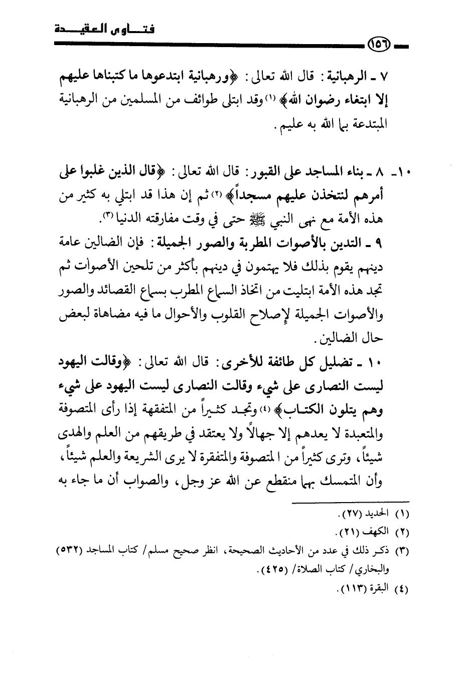 7 - الرهبانية: قال الله تعالى: {وَرَهْبَانِيَّةً ابْتَدَعُوهَا مَا كَتَبْنَاهَا عَلَيْهِمْ إِلَّا ابْتِغَاءَ رِضْوَانِ اللَّهِ} ، وقد ابتلي طوائف من المسلمين من الرهبانية المبتدعة بما الله به عليم.
