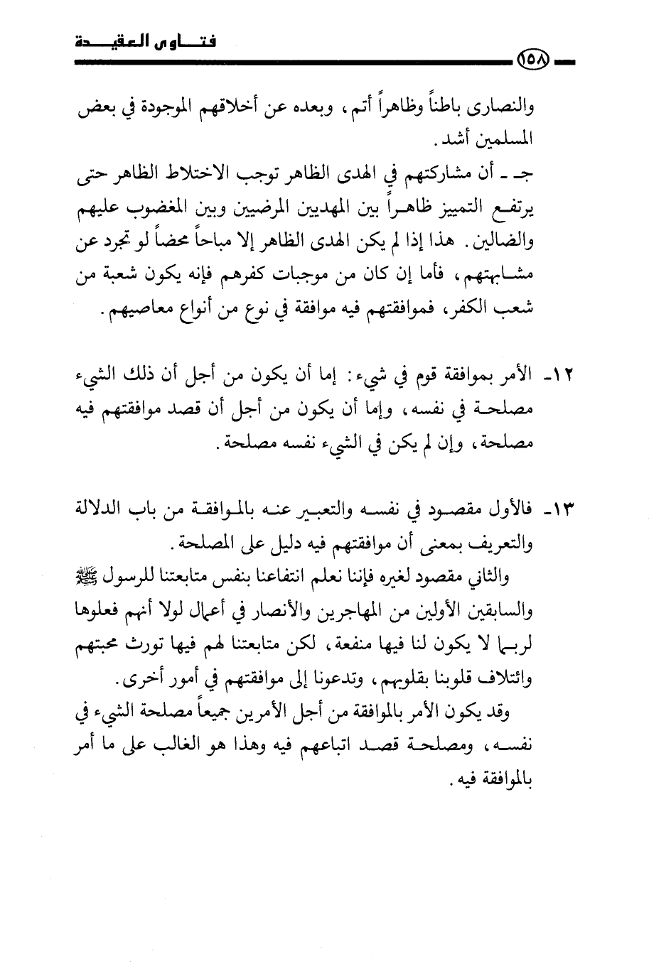 13 - فالأول مقصود في نفسه والتعبير عنه بالموافقة من باب الدلالة والتعريف بمعنى أن موافقتهم فيه دليل على المصلحة.