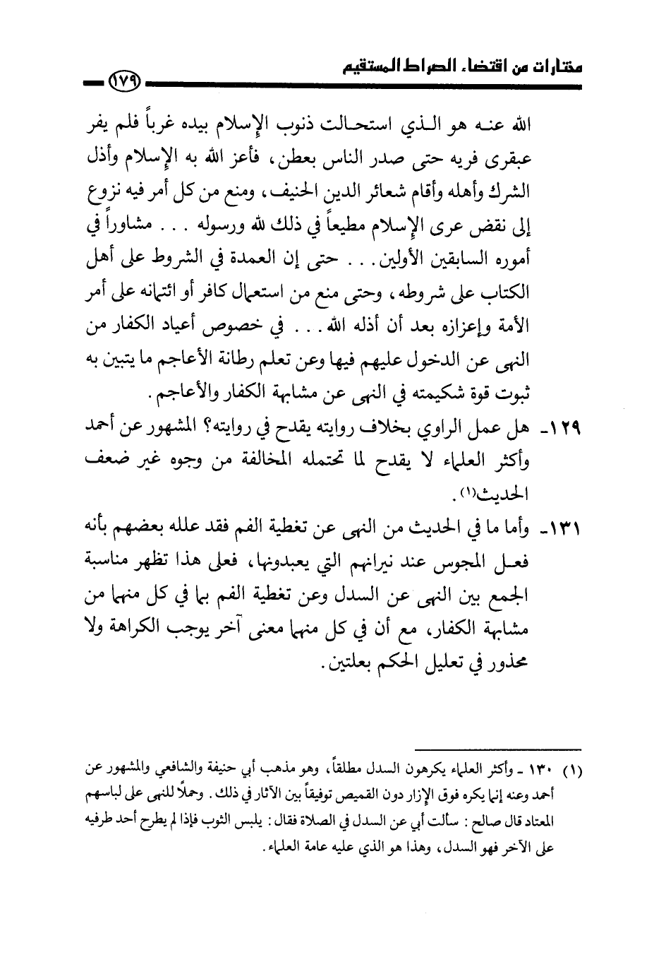 131 - وأما ما في الحديث من النهي عن تغطية الفم فقد علله بعضهم بأنه فعل المجوس عند نيرانهم التي يعبدونها، فعلى هذا تظهر مناسبة الجمع بين النهي عن السدل وعن تغطية الفم بما في كل منهما من مشابهة الكفار، مع أن في كل منهما معنى آخر يوجب الكراهة ولا محذور في تعليل الحكم بعلتين. (¬1)