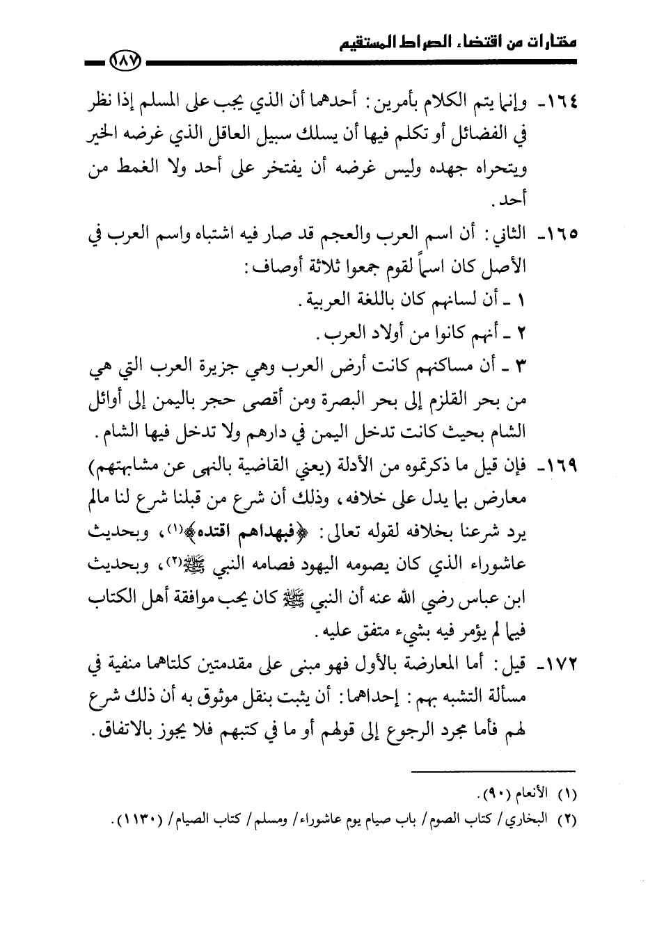 165 - الثاني: أن اسم العرب والعجم قد صار فيه اشتباه واسم العرب في الأصل كان اسمًا لقوم جمعوا ثلاثة أوصاف:
