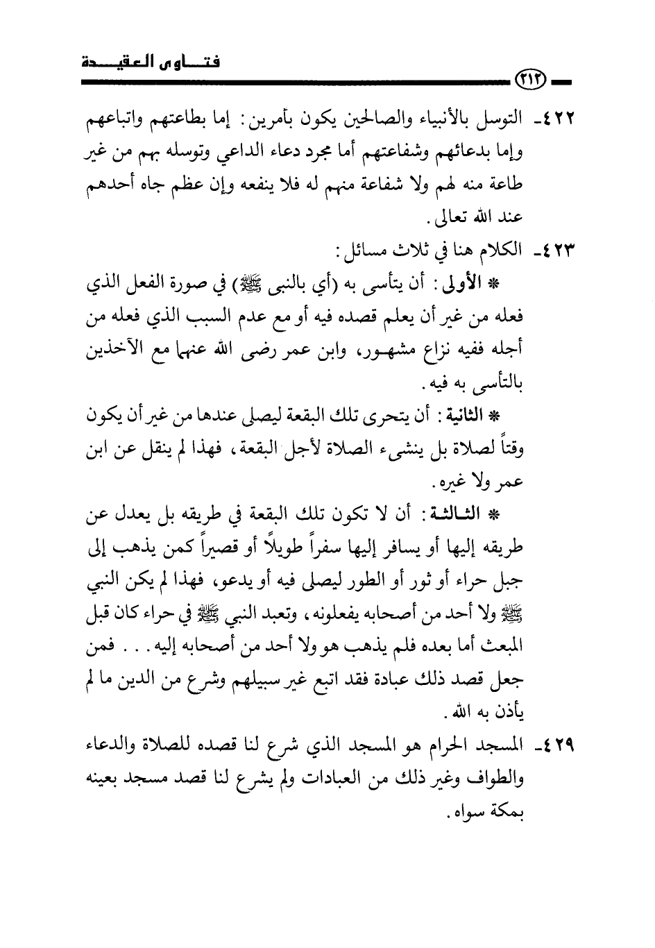 429 - المسجد الحرام هو المسجد الذي شرع لنا قصده للصلاة والدعاء والطواف وغير ذلك من العبادات ولم يشرع لنا قصد مسجد بعينه بمكة سواه.