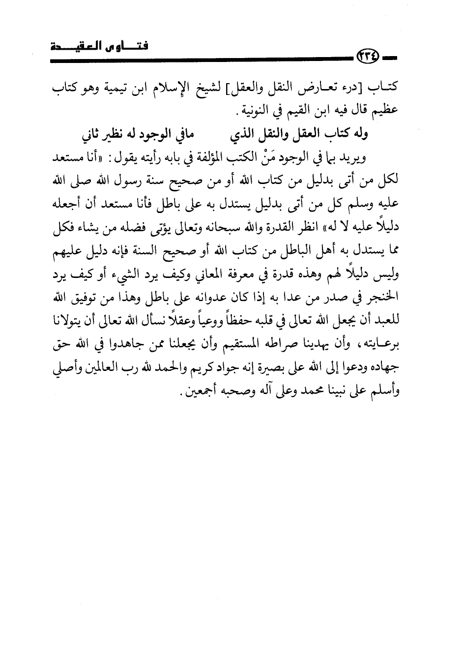 وله كتاب العقل والنقل الذي ... ما في الوجود له نظير ثاني