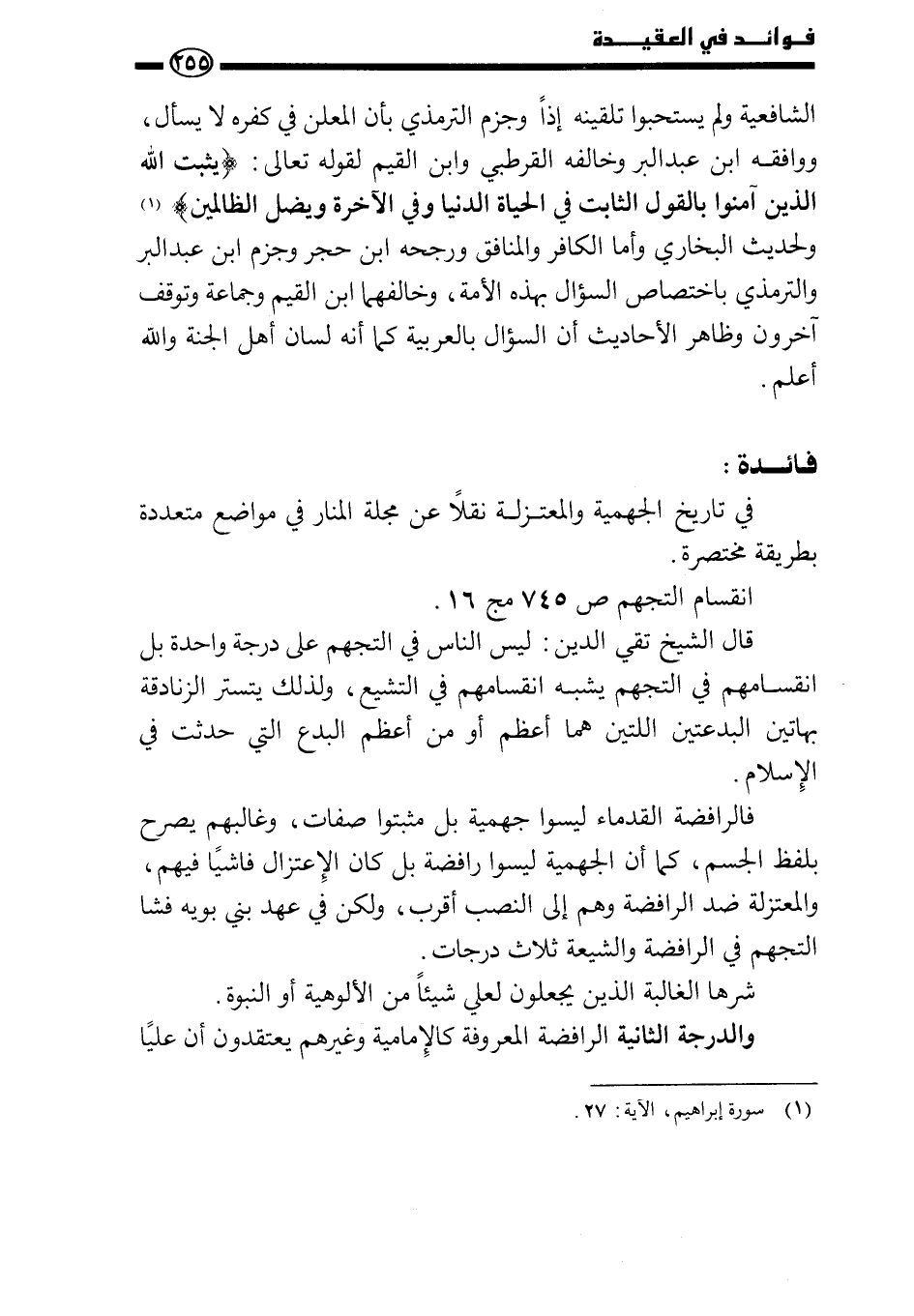 في تاريخ الجهمية والمعتزلة نقلا عن مجلة المنار في مواضع متعددة بطريقة مختصرة.