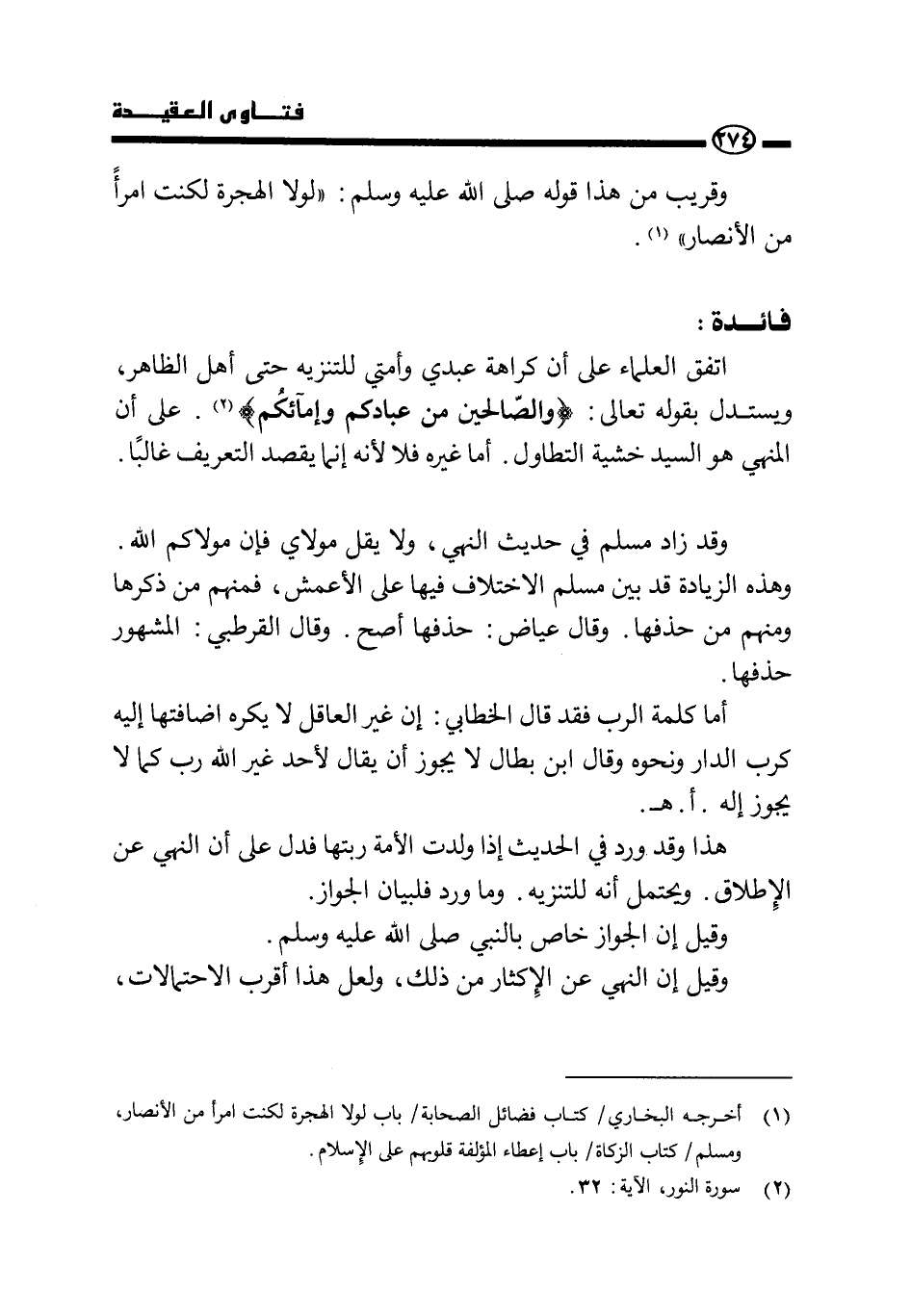 (¬1) أخرجه البخاري: كتاب فضائل الصحابة: باب لولا الهجرة لكنت امرأ من الأنصار، ومسلم: كتاب الزكاة: باب إعطاء المؤلفة قلوبهم على الإسلام.