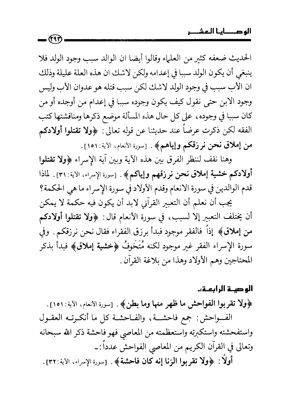وهنا نقف لننظر الفرق بين هذه الآية وبين آية الإسراء {وَلَا تَقْتُلُوا أَوْلَادَكُمْ خَشْيَةَ إِمْلَاقٍ نَحْنُ نَرْزُقُهُمْ وَإِيَّاكُمْ} [سورة الإسراء الآية: 31] . لماذا قدم الوالدين في سورة الأنعام وقدم الأولاد في سورة الإسراء ما هي الحكمة؟