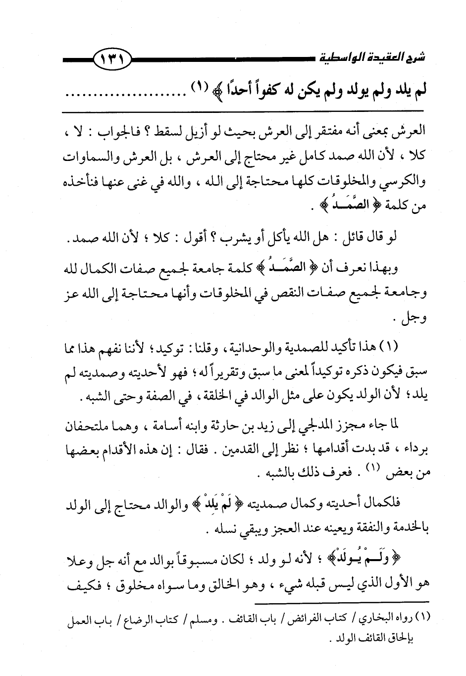 هذا تأكيد للصمدية والوحدانية، وقلنا: توكيد، لأننا نفهم هذا مما سبق فيكون ذكره توكيدًا لمعنى ما سبق وتقريرًا له، فهو لأحديته وصمديته لم يلد، لأن الولد يكون على مثل الوالد في الخلقة، في الصفة وحتى الشبه.