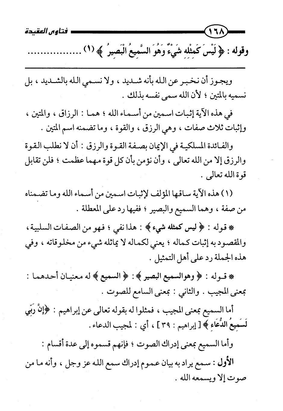 وقوله: {لَيْسَ كَمِثْلِهِ شَيْءٌ وَهُوَ السَّمِيعُ الْبَصِيرُ} . . . . .
