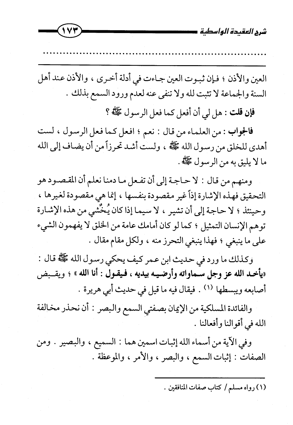 فإن قلت: هل لي أن أفعل كما فعل الرسول صَلَّى اللَّهُ عَلَيْهِ وَسَلَّمَ؟