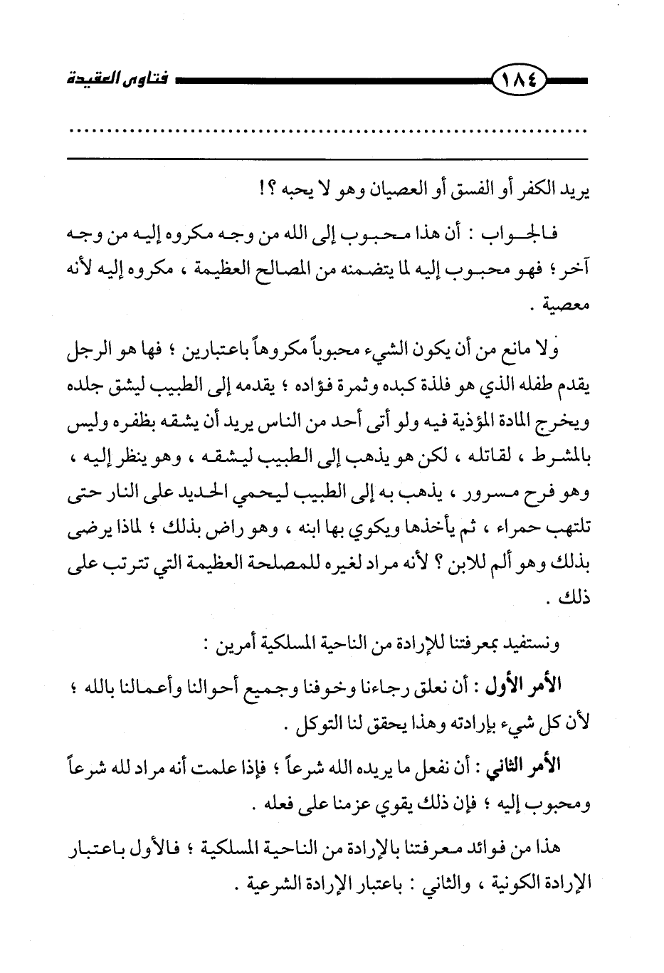هذا من فوائد معرفتنا بالإرادة من الناحية المسلكية، فالأول باعتبار الإرادة الكونية، والثاني: باعتبار الإرادة الشرعية.