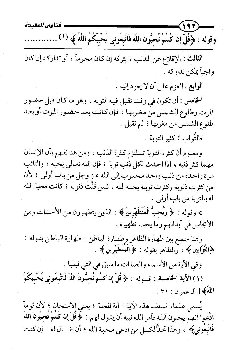 وقوله: {قُلْ إِنْ كُنْتُمْ تُحِبُّونَ اللَّهَ فَاتَّبِعُونِي يُحْبِبْكُمُ اللَّهُ} ......