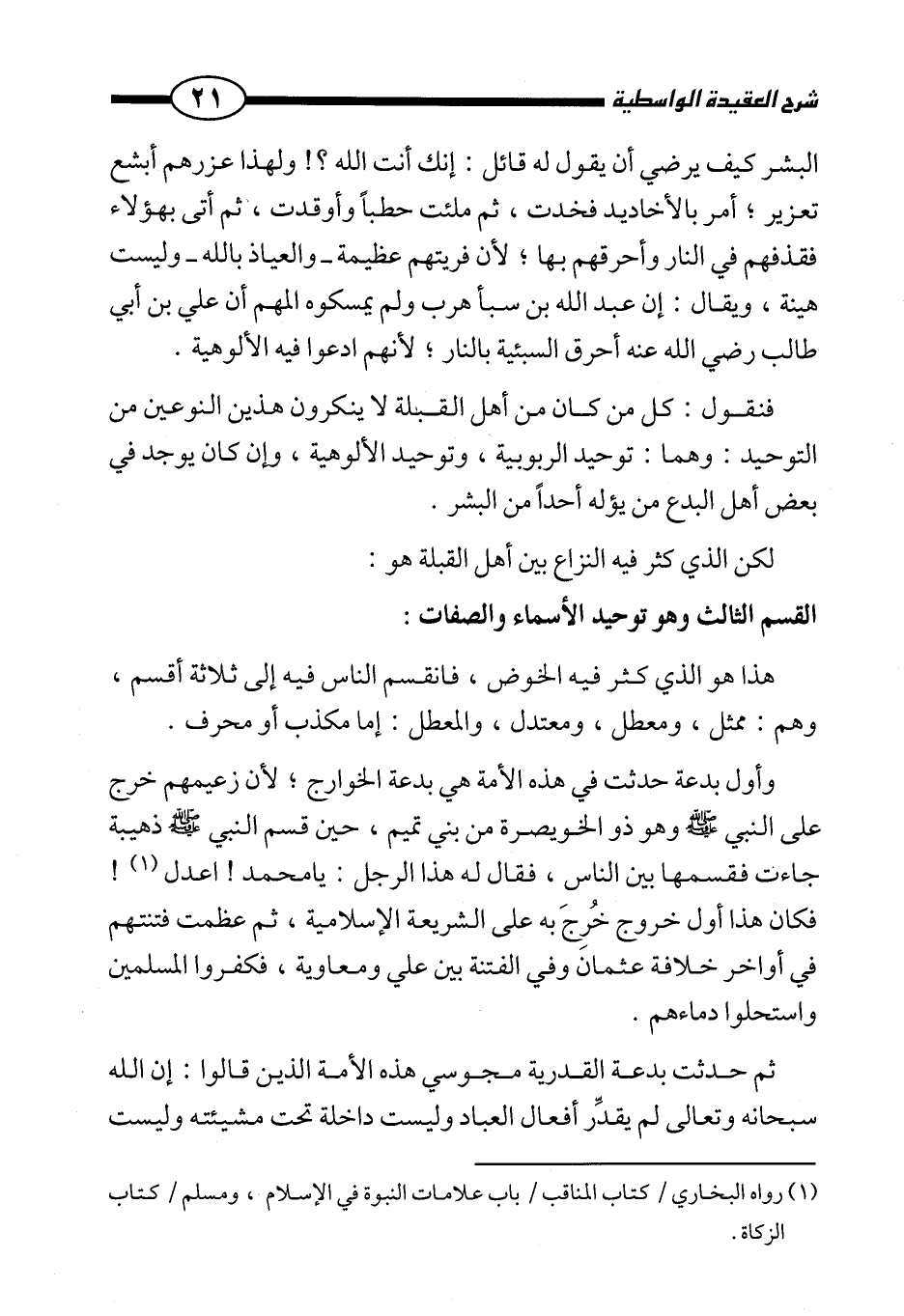 وأول بدعة حدثت في هذه الأمة هي بدعة الخوارج؛ لأن زعيمهم خرج على النبي صَلَّى اللَّهُ عَلَيْهِ وَسَلَّمَ وهو ذو الخويصرة من بني تميم، حين قسم النبي صَلَّى اللَّهُ عَلَيْهِ وَسَلَّمَ ذهبية جاءت فقسمها بين الناس، فقال له هذا الرجل: يا محمد اعدل! (¬1) فكان هذا أول خروج خُرِجَ به على الشريعة الإسلامية، ثم عظمت فتنتهم في أواخر خلافة عثمان وفي الفتنة بين عليّ ومعاوية، فكفروا المسلمين واستحلوا دماءهم.
