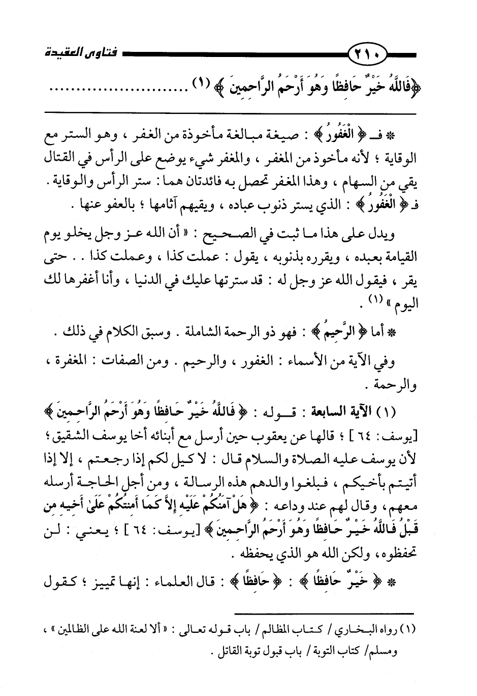 {فَاللَّهُ خَيْرٌ حَافِظًا وَهُوَ أَرْحَمُ الرَّاحِمِينَ} (1) ..........................................