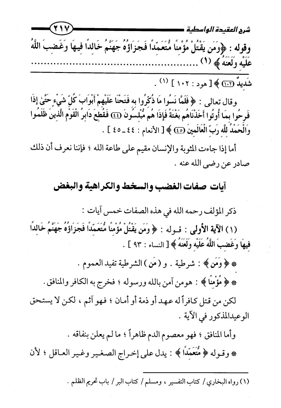 وقوله: {وَمَنْ يَقْتُلْ مُؤْمِنًا مُتَعَمِّدًا فَجَزَاؤُهُ جَهَنَّمُ خَالِدًا فِيهَا وَغَضِبَ اللَّهُ عَلَيْهِ وَلَعَنَهُ} (1) ...................................................................................