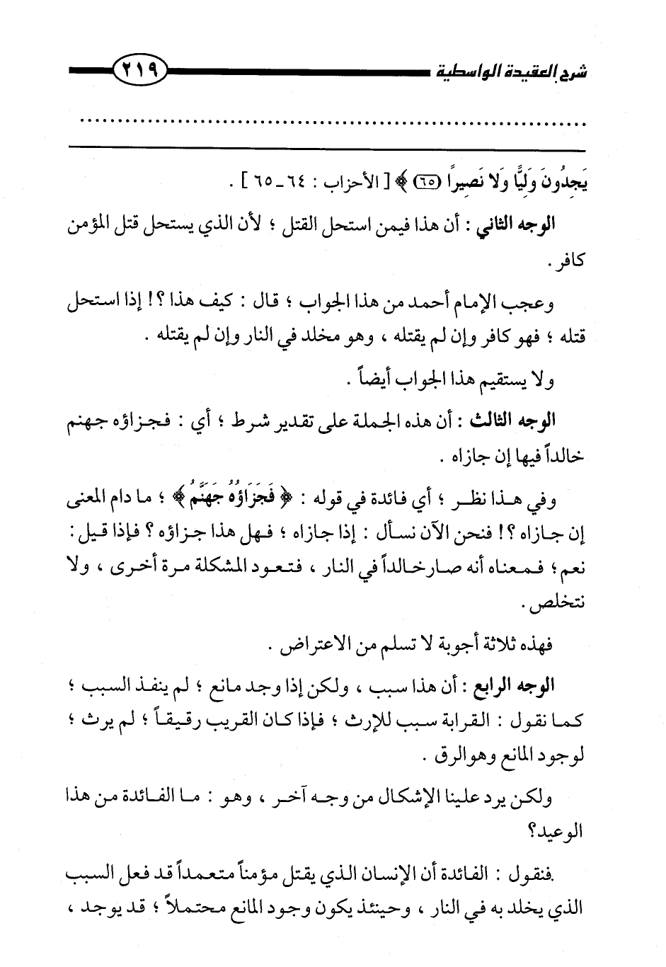 وعجب الإمام أحمد من هذا الجواب، قال: كيف هذا؟! إذا استحل قتله فهو كافر وإن لم يقتله، وهو مخلد في النار وإن لم يقتله.