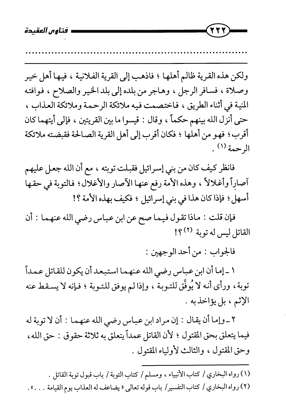 فإن قلت: ماذا تقول فيما صح عن ابن عباس - رضي الله عنهما-: أن القاتل ليس له توبة؟!