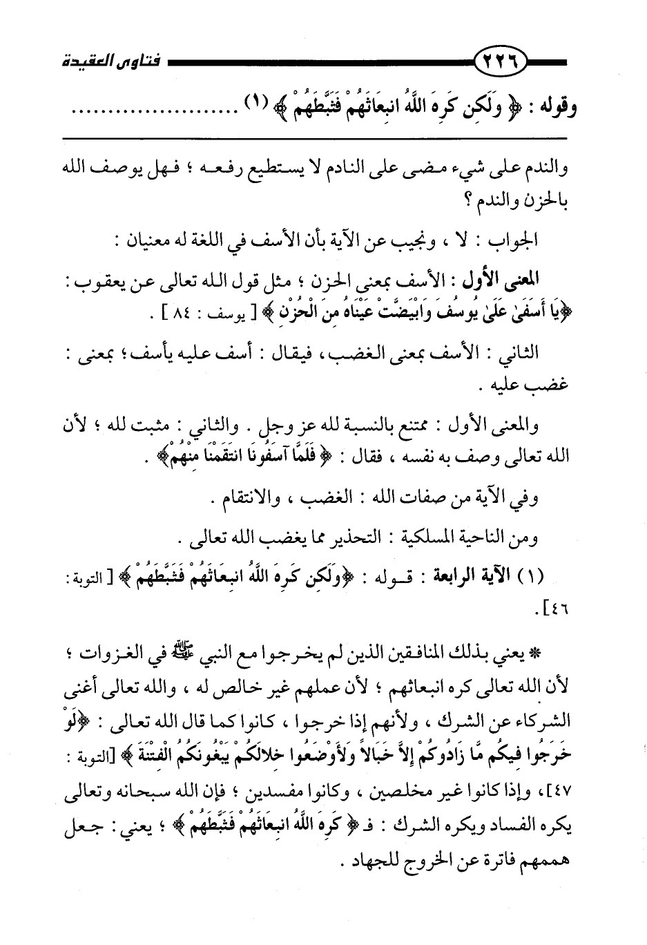 وقوله: {وَلَكِنْ كَرِهَ اللَّهُ انْبِعَاثَهُمْ فَثَبَّطَهُمْ} (1) ....................................