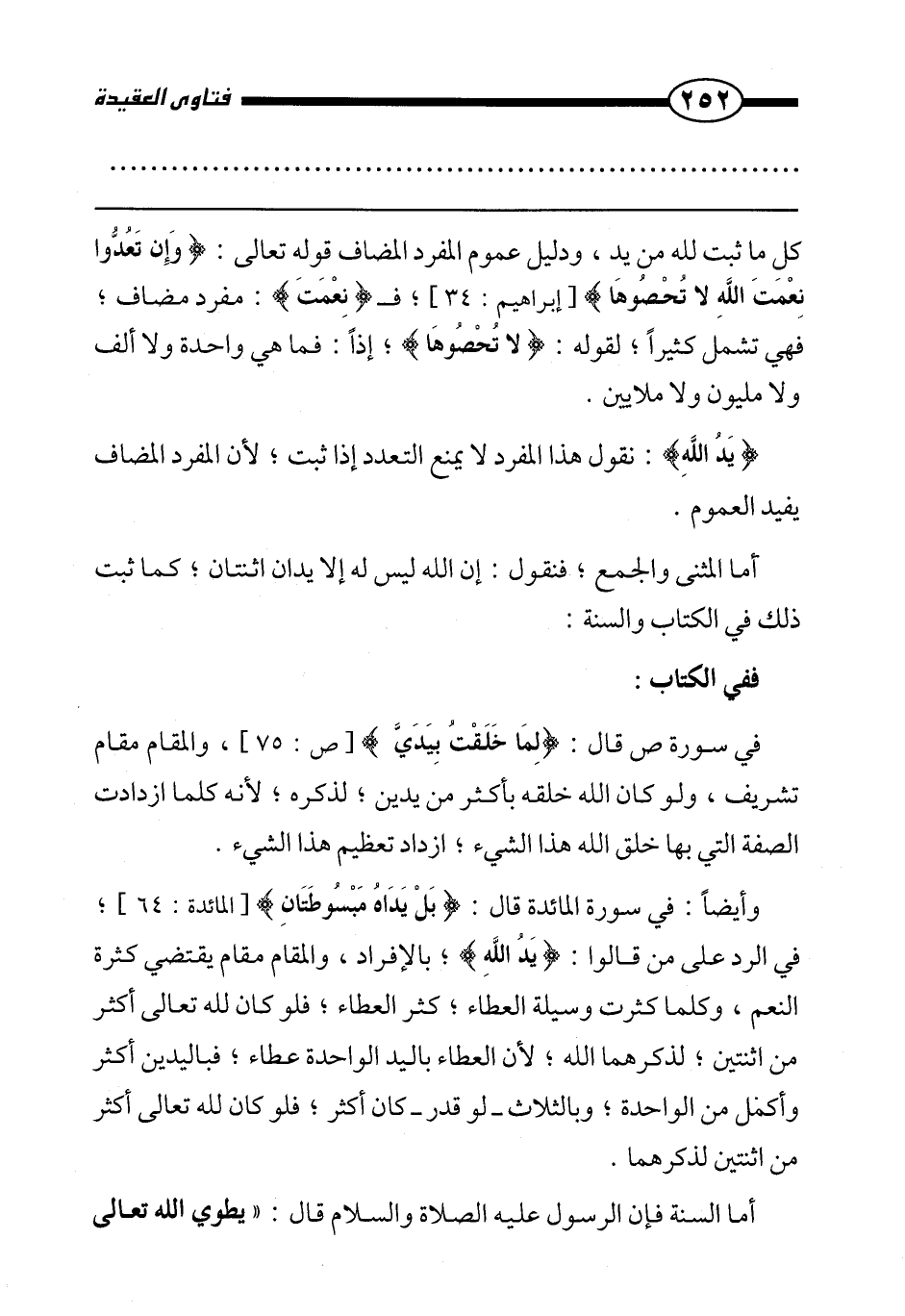 كل ما ثبت لله من يد، ودليل عموم المفرد المضاف قوله تعالى: {وَإِنْ تَعُدُّوا نِعْمَةَ اللَّهِ لَا تُحْصُوهَا} [إبراهيم: 34] فـ (نعمت) : مفرد مضاف، فهي تشمل كثيرًا؛ لقوله: {لَا تُحْصُوهَا} ، إذًا: فما هي واحدة ولا ألف ولا مليون ولا ملايين.