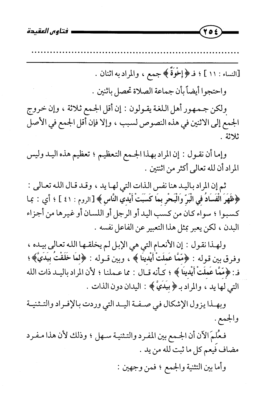 وبهذا يزول الإشكال في صفة اليد التي وردت بالإفراد والتثنية والجمع.