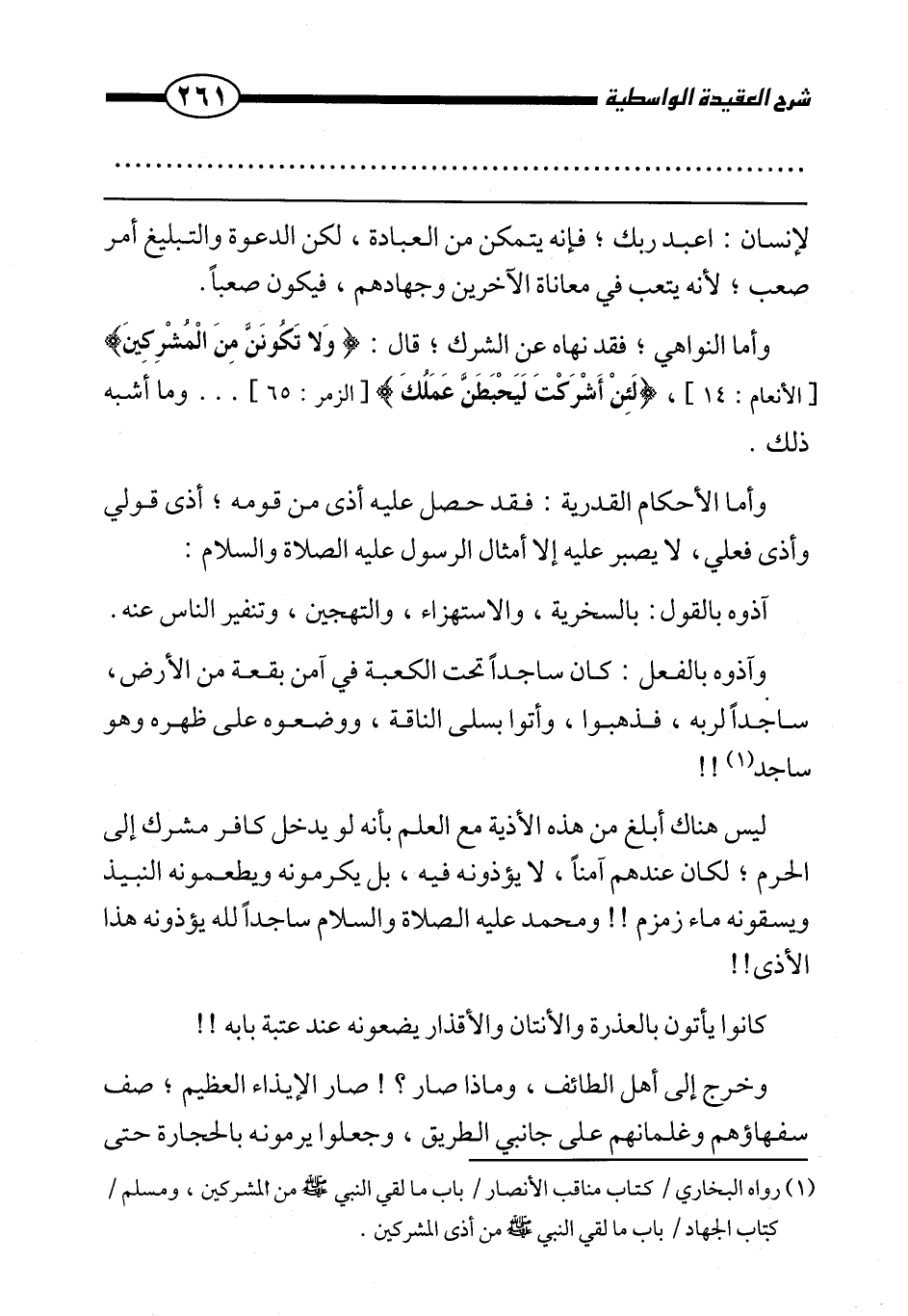 ليس هناك أبلغ من هذه الأذية مع العلم بأنه لو يدخل كافر مشرك إلى الحرم، لكان عندهم آمنًا، لا يؤذونه فيه، بل يكرمونه ويطعمونه النبيذ ويسقونه ماء زمزم!! ومحمد -عليه الصلاة والسلام- ساجدًا لله يؤذونه هذا الأذى!!