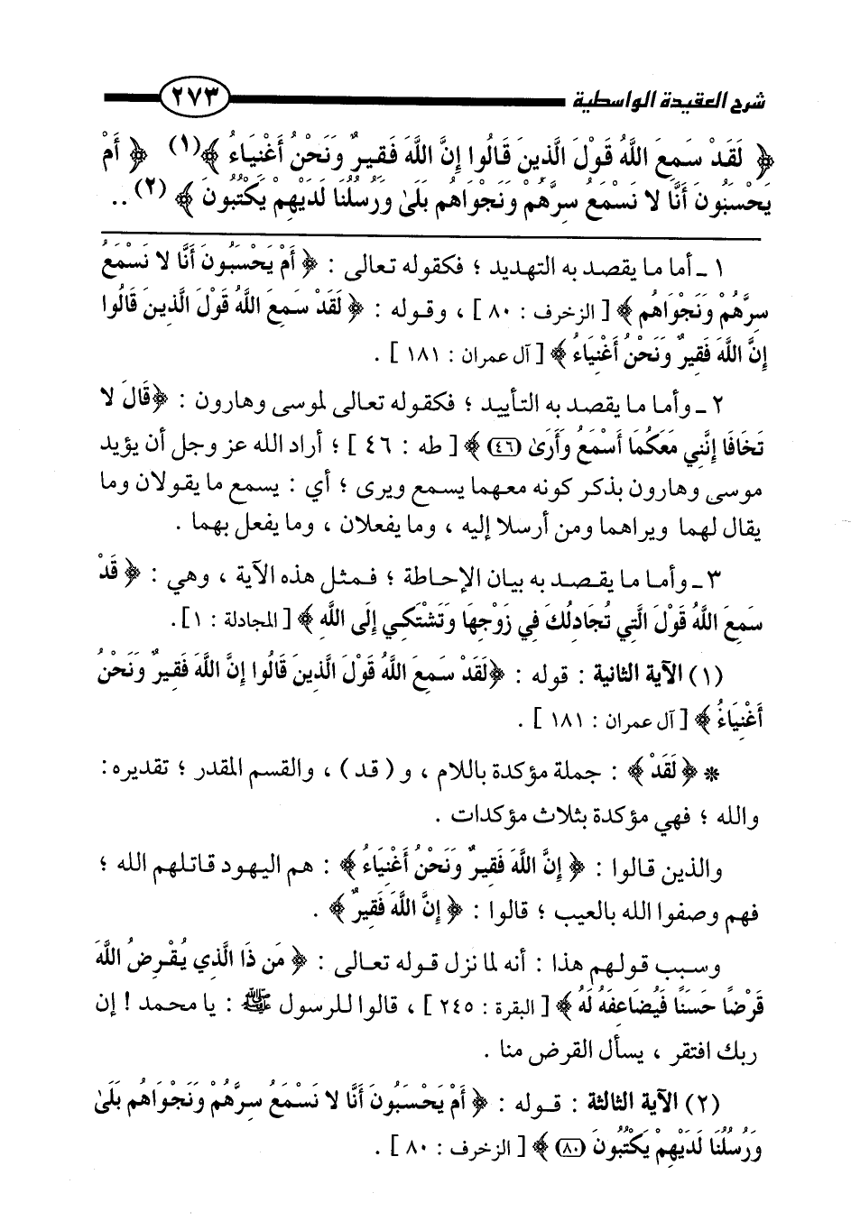 {لَقَدْ سَمِعَ اللَّهُ قَوْلَ الَّذِينَ قَالُوا إِنَّ اللَّهَ فَقِيرٌ وَنَحْنُ أَغْنِيَاءُ} (1) {أَمْ يَحْسَبُونَ أَنَّا لَا نَسْمَعُ سِرَّهُمْ وَنَجْوَاهُمْ بَلَى وَرُسُلُنَا لَدَيْهِمْ يَكْتُبُونَ} (2) .............................